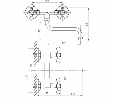 Смеситель для кухни Псм-Профсан Стандарт-Б настенный PSM-108-89