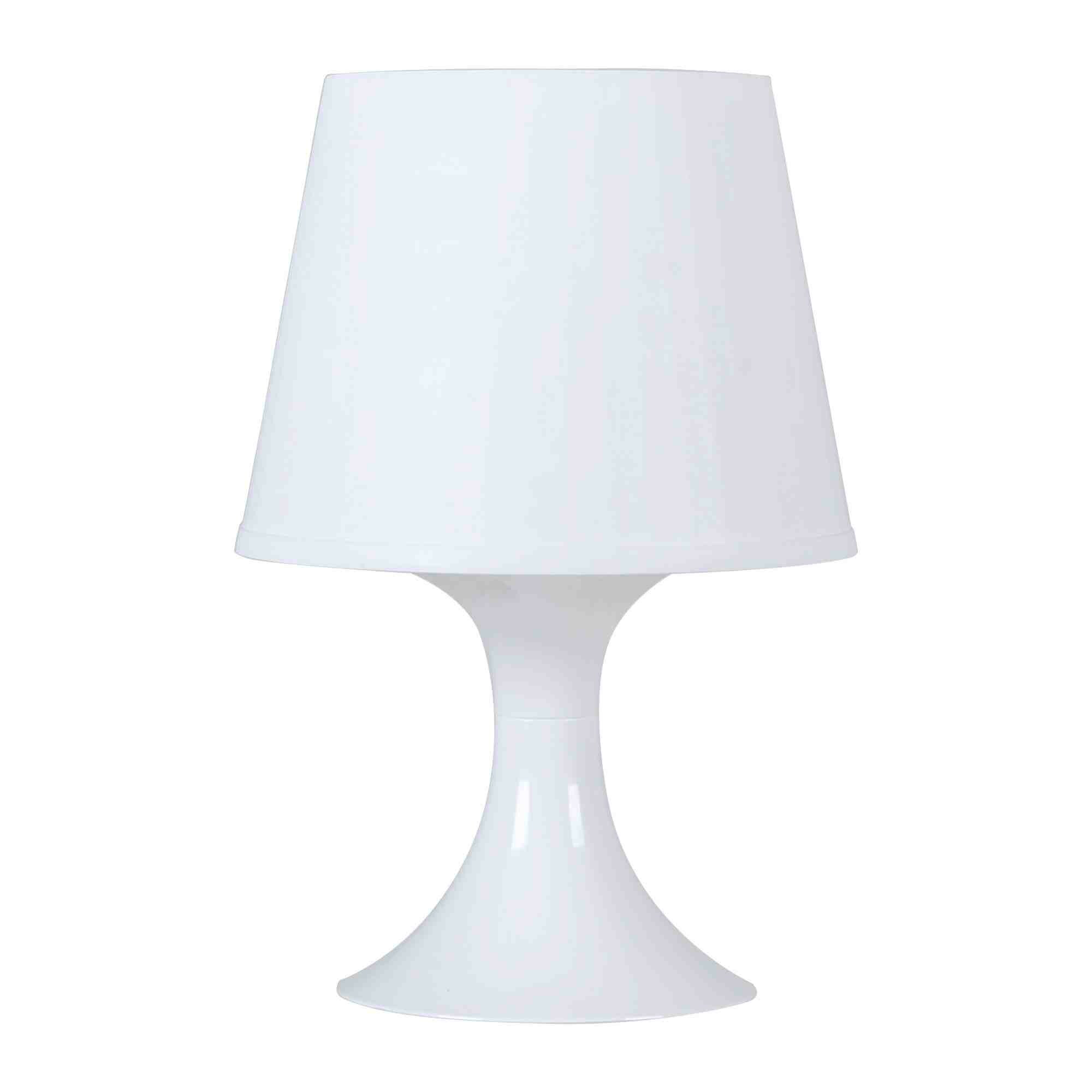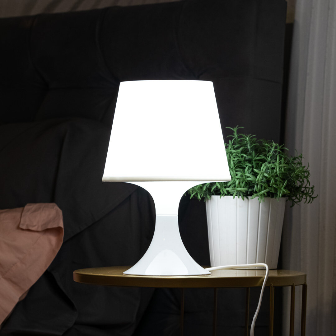 Настольный пластиковый светильник для освещения помещений. Белый плафон с белым шнуром и направлением света вверх. Настольная лампа с цоколем Е14 / 15Вт / IP20 / гарантия 1 год / 220В / 12-117-111