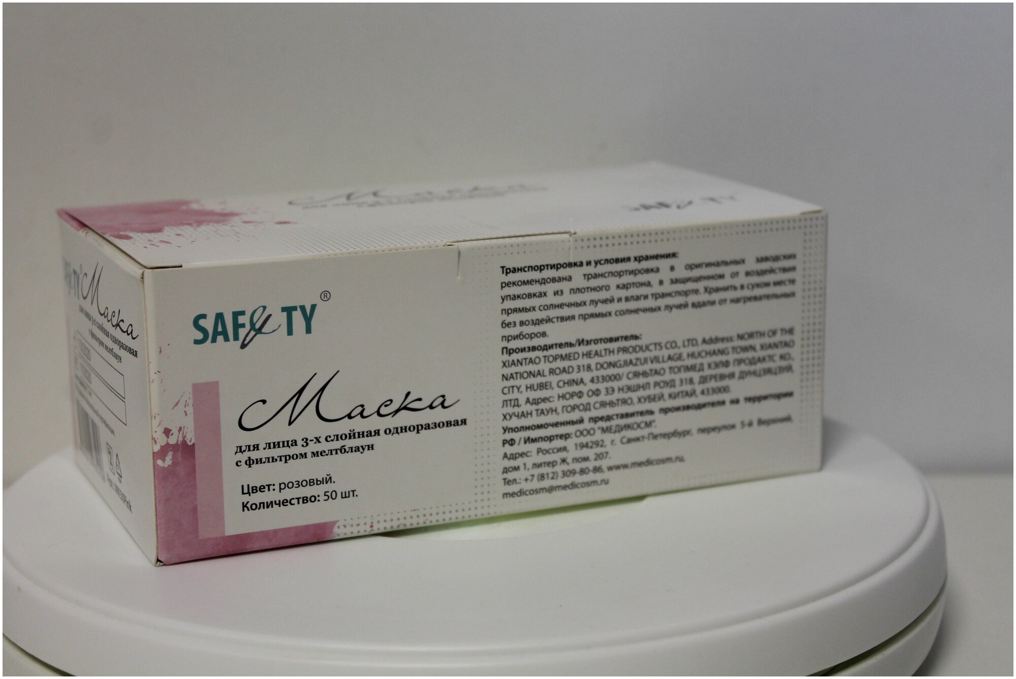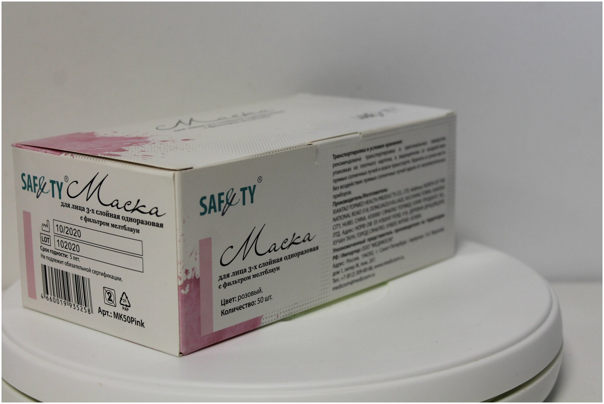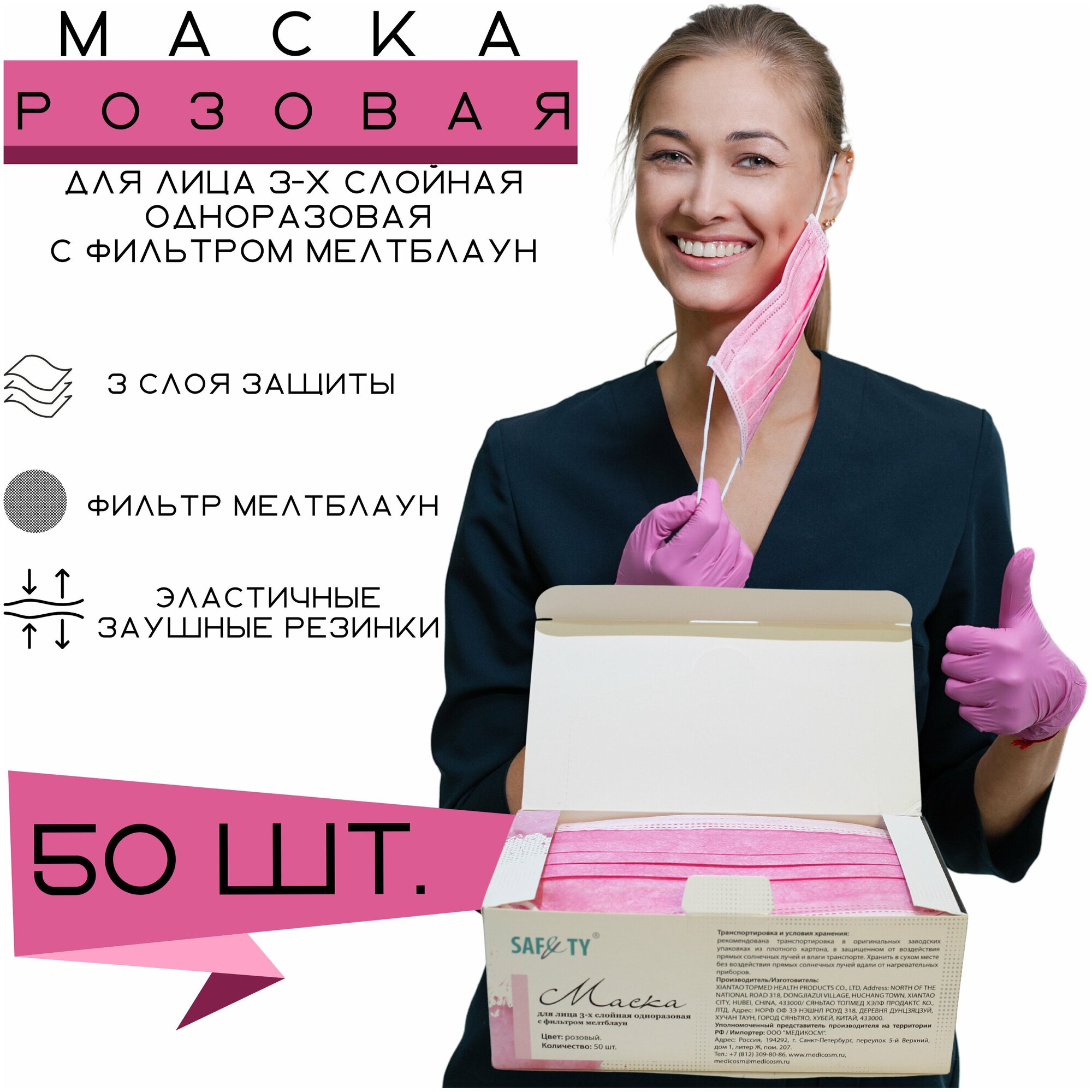Маска медицинская, розовая 3х слойная. 50шт интересное: