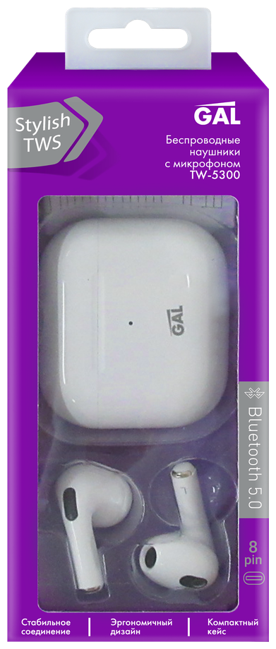 Bluetooth наушники вкладыши с микрофоном GAL TW-5300, TWS, V5, беспроводная мобильная гарнитура, белые интересное: