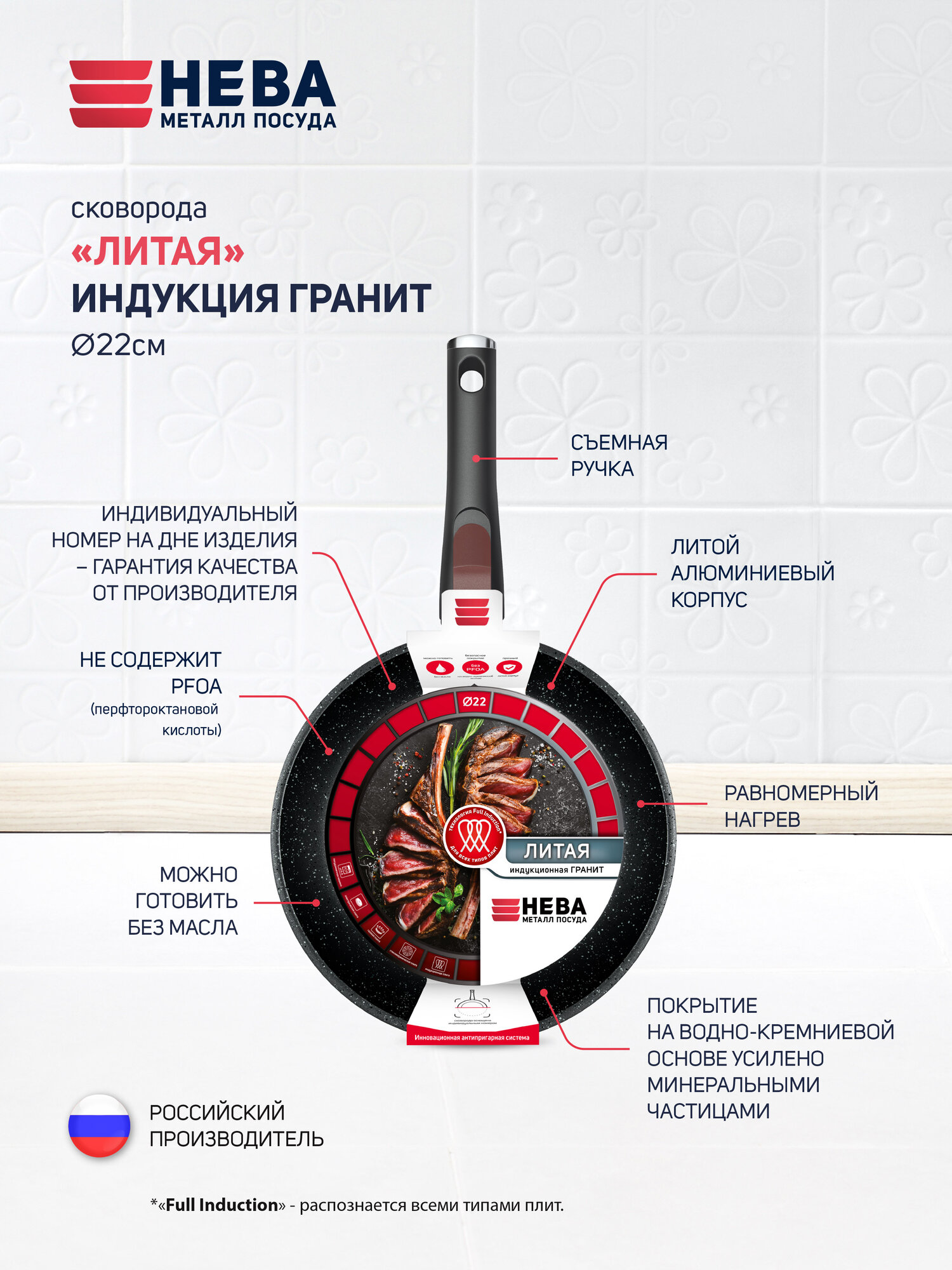 СохранитьСковорода Нева Металл Посуда НМП Индукция Гранит со съемной ручкой 22 см L18022i интересное: