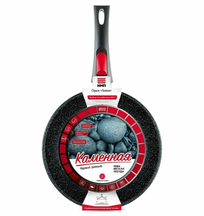 Сковорода Нева Металл Посуда НМП "Каменная" Чёрный гранит со съемной ручкой 24 см (18024)