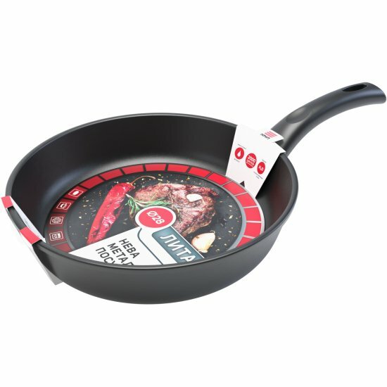 Сковорода 28 см литая алюминиевая с антипригарным покрытием Нева Металл Посуда Традиционная 6128 с толстым дном