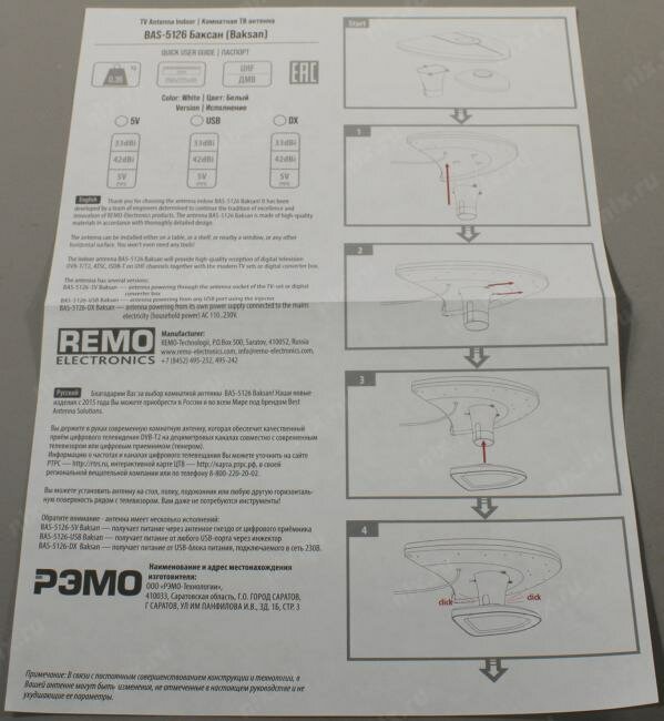 СохранитьАнтенны ТВ Рэмо Антенна комнатная РЭМО BAS-5126-5V Баксан (активная, DVB-T2, без б/п, 42 дБи, коробка) интересное: