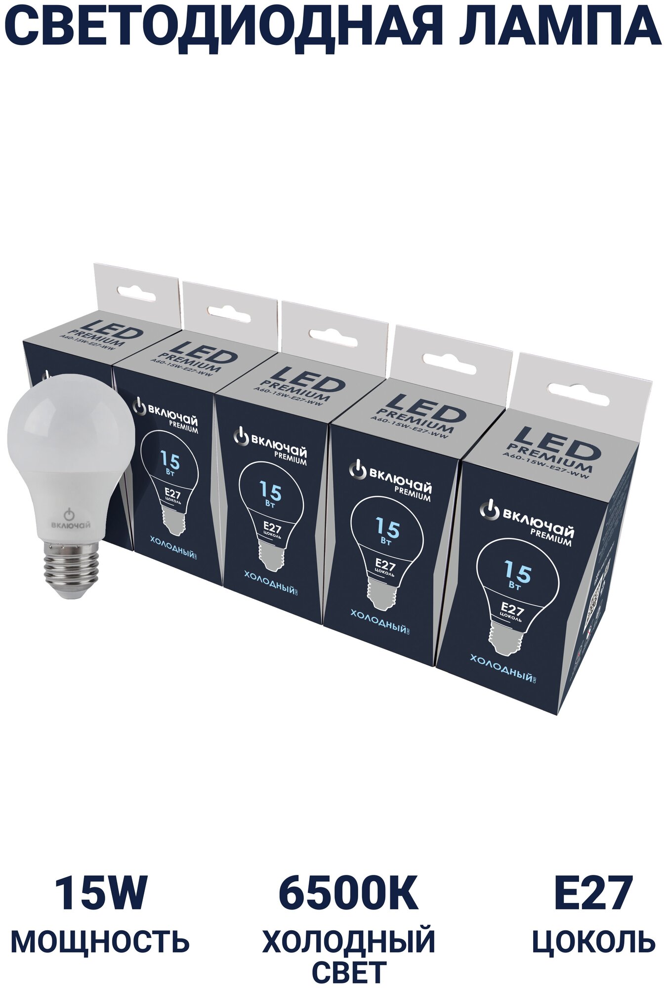 Лампочка светодиодная 15W E27 A60 6500K 220V (LED PREMIUM А60-15W-E27-WW) 5шт интересное: