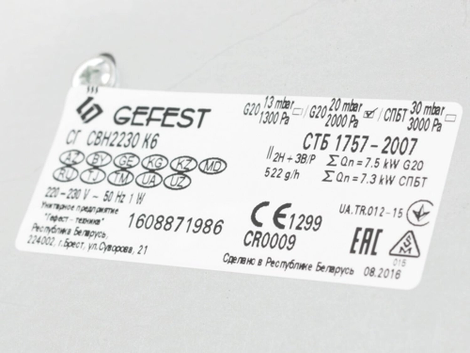 GEFEST [215598] GEFEST СГ СВН 2230 К6