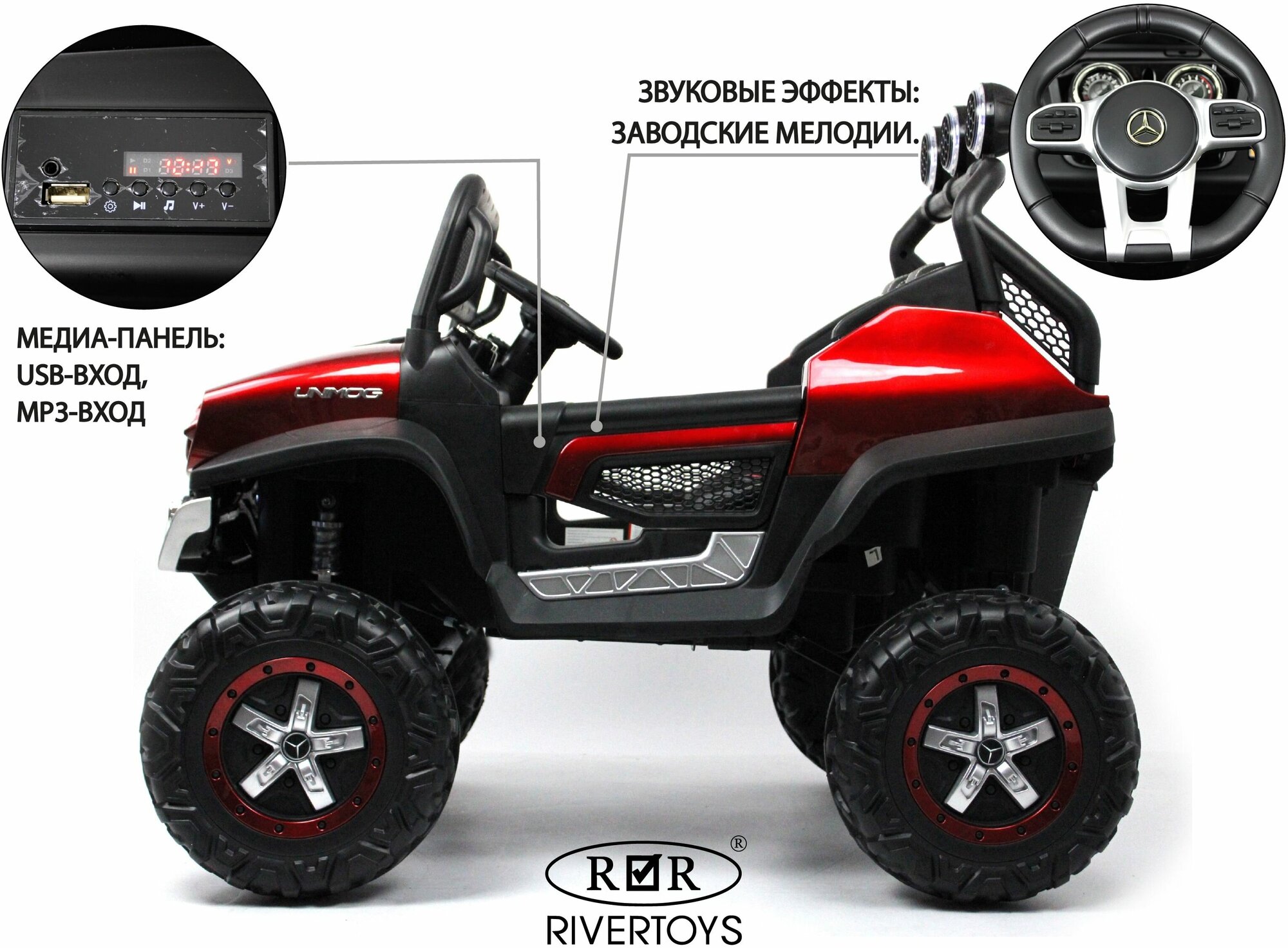 Купить Детский электромобиль RiverToys Mercedes-Benz Unimog Mini (P777BP) вишневый глянец