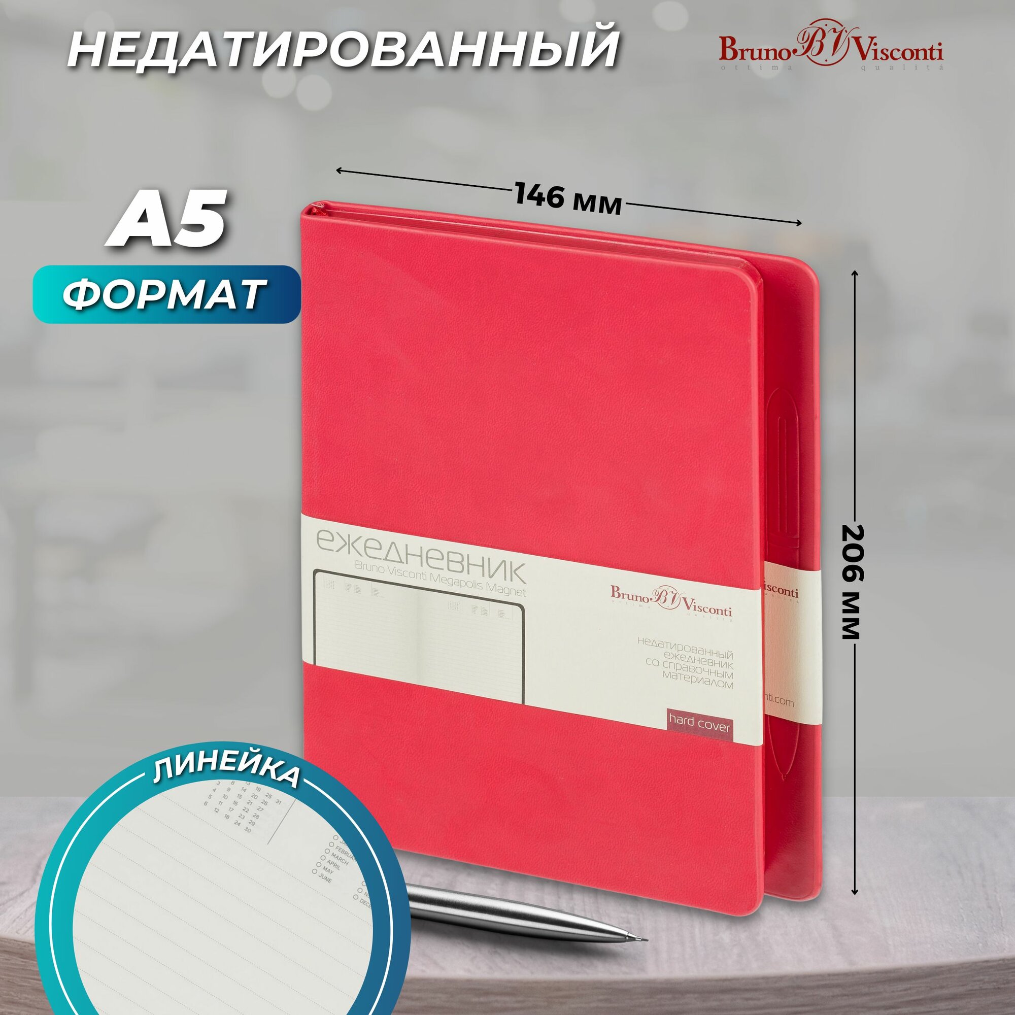 Ежедневник BrunoVisconti недатированный, А5 (156 х 207 мм), "MEGAPOLIS MAGNET" красный 240 стр, Арт. 3-226/03