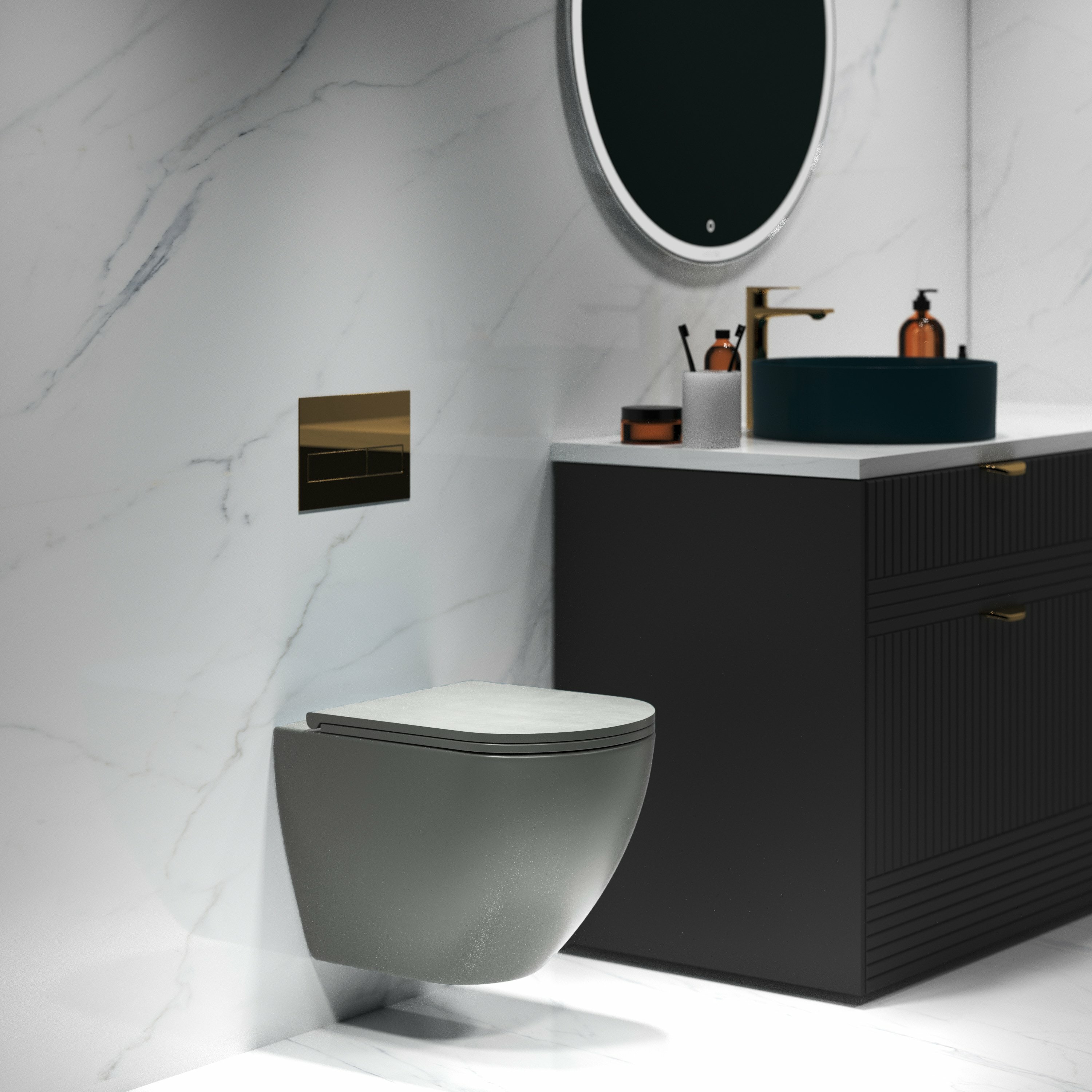 Унитаз GROSSMAN GR-4455GMS серый матовый подвесной безободковый с тонкой крышкой