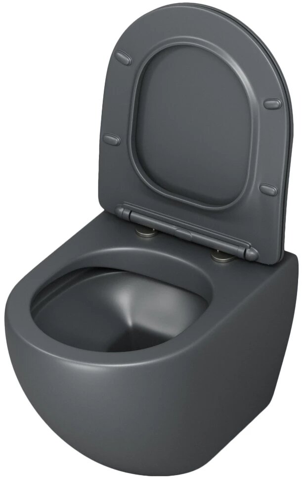 Унитаз GR-4455GMS (490*370*360) серый матовый подвесной безободковый с тонкой крышкой