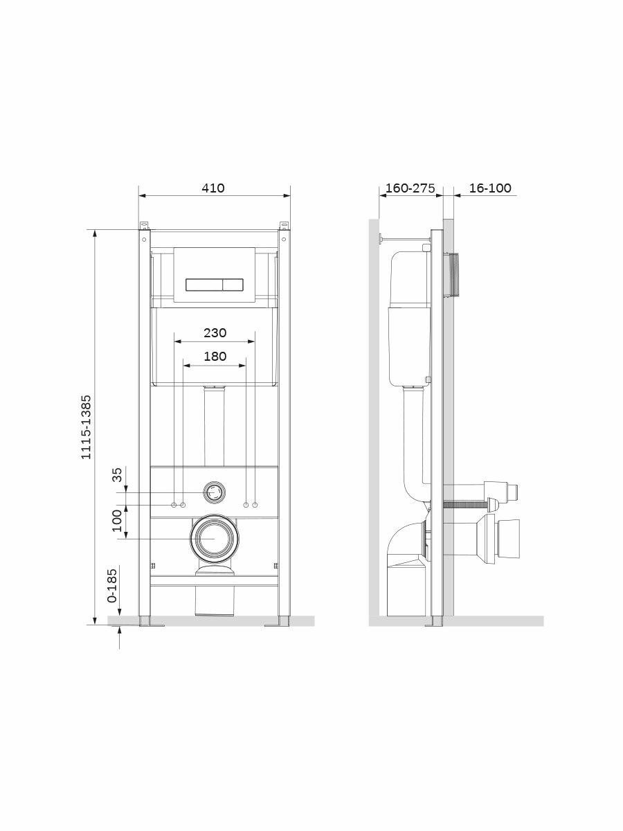| Комплектация | звукоизоляция / рама / сливной бачок / кнопка смыва |