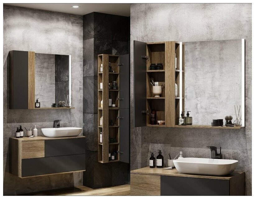 Тумба под раковину в ванную AQUATON 1A247601LQX60 Лофт Урбан 80 серый графит, дуб орегон