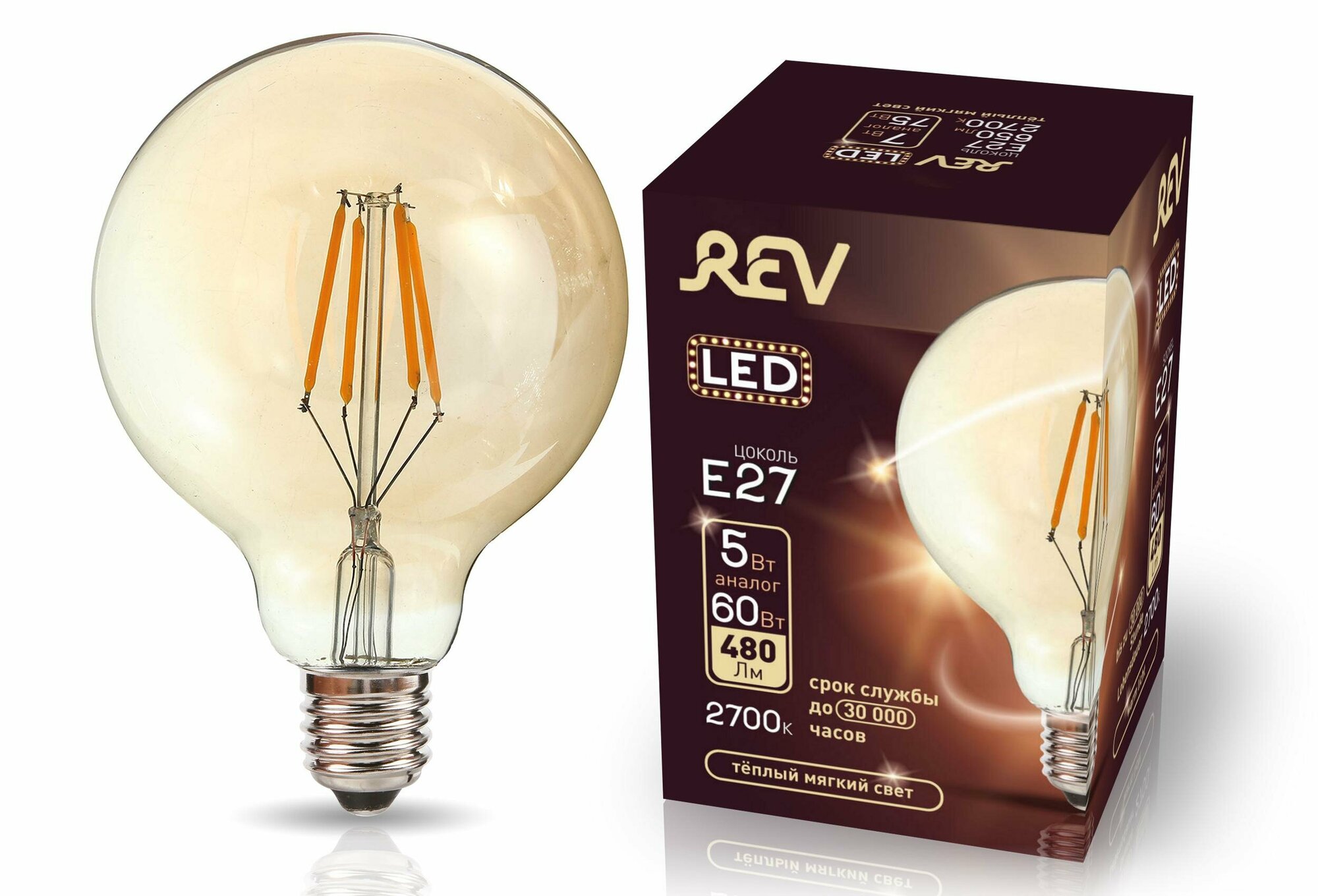 Лампа светодиодная REV VINTAGE 5 Вт Е27 филаментная шар G95 2700 К теплый свет 230 В
