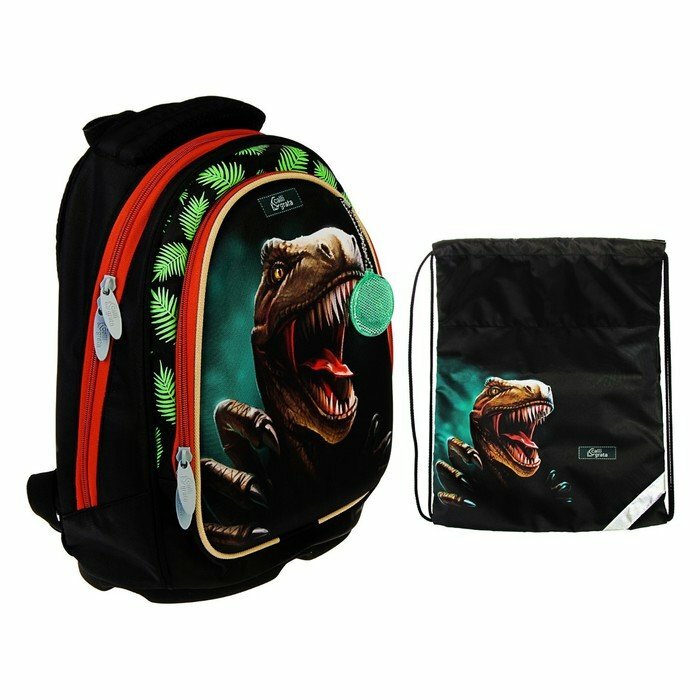 Рюкзак каркасный Calligrata, 39 х 28 х 18 см, + мешок для обуви, Крутой дино, зелёный 4260105 .