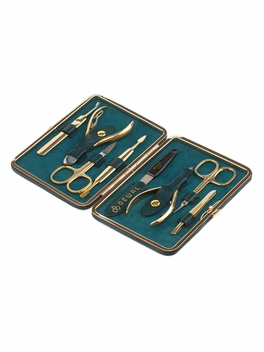 Купить Маникюрный набор DEWAL, 8пр. Футляр: натуральная кожа, цвет зеленый