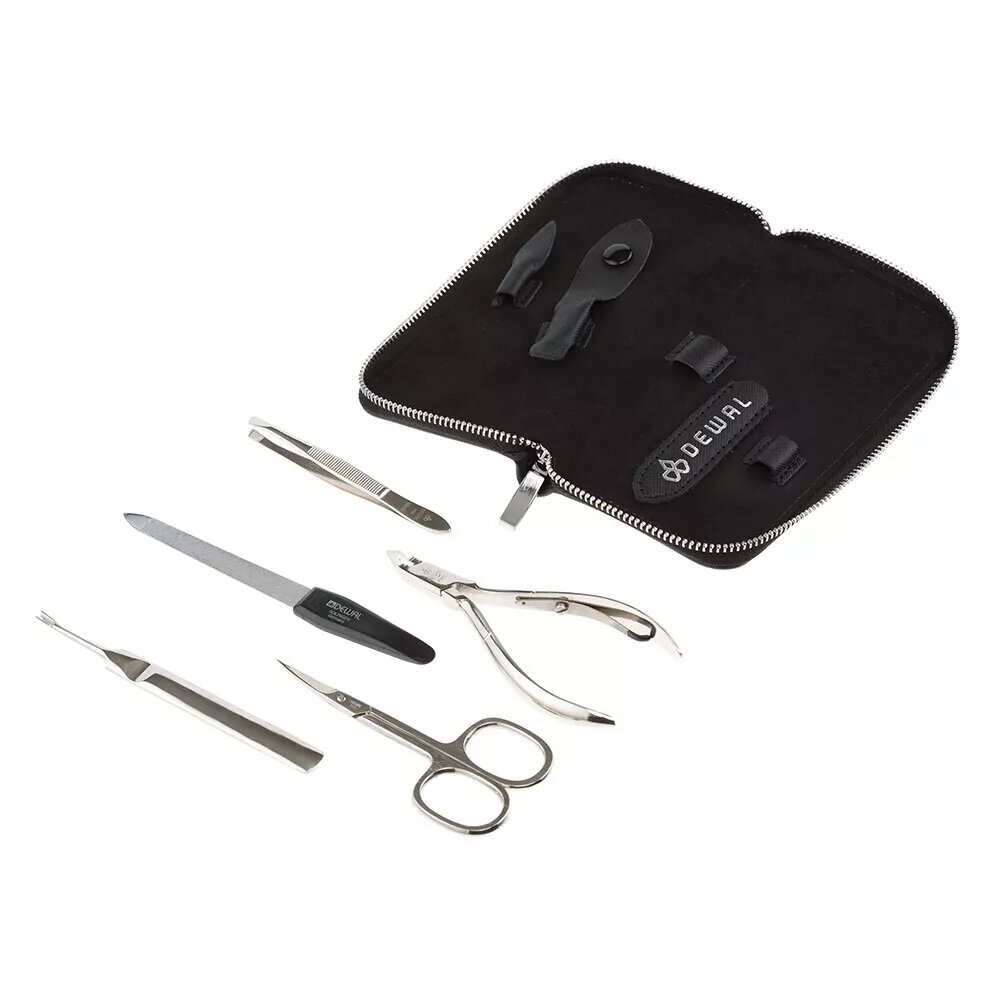 Маникюрный набор DEWAL, 5пр. Футляр: натуральная кожа, цвет черный, 902BLACK