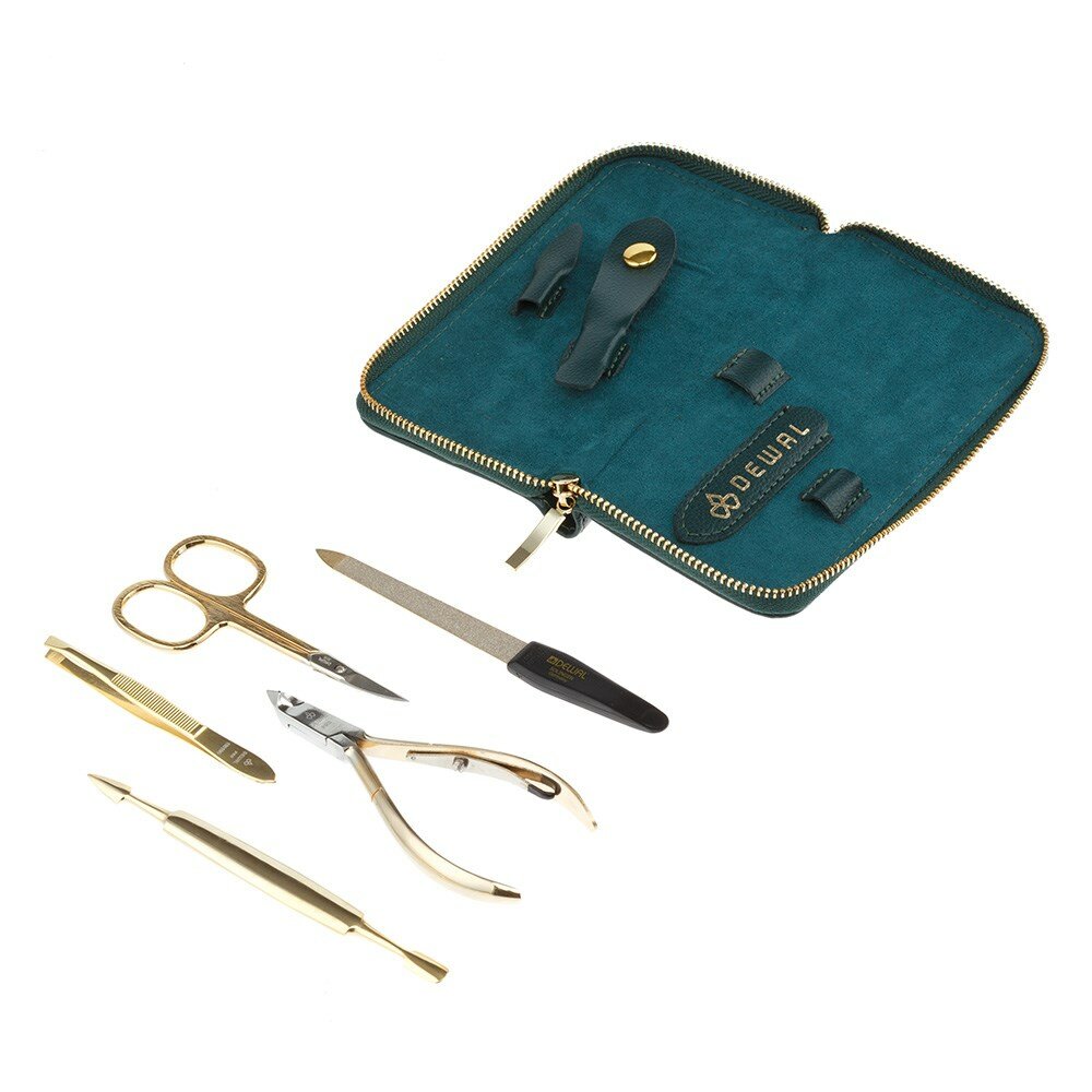 Маникюрный набор DEWAL, 5пр. Футляр: натуральная кожа, цвет зеленый
