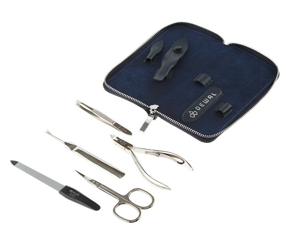 Маникюрный набор DEWAL, 5пр. Футляр: натуральная кожа, цвет синий DEWAL MR-902BLUE
