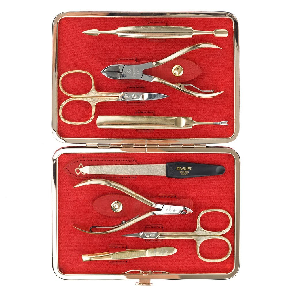 Купить Маникюрный набор DEWAL, 8пр. Футляр: натуральная кожа, цвет красный