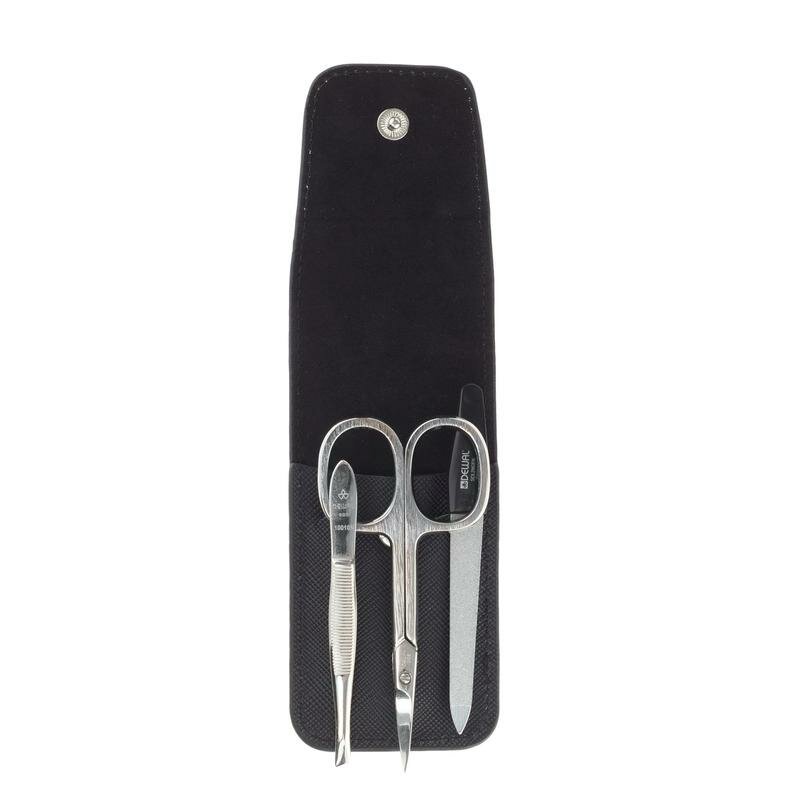 Маникюрный набор DEWAL, 3пр. Футляр: натуральная кожа, цвет черный, 900BLACK