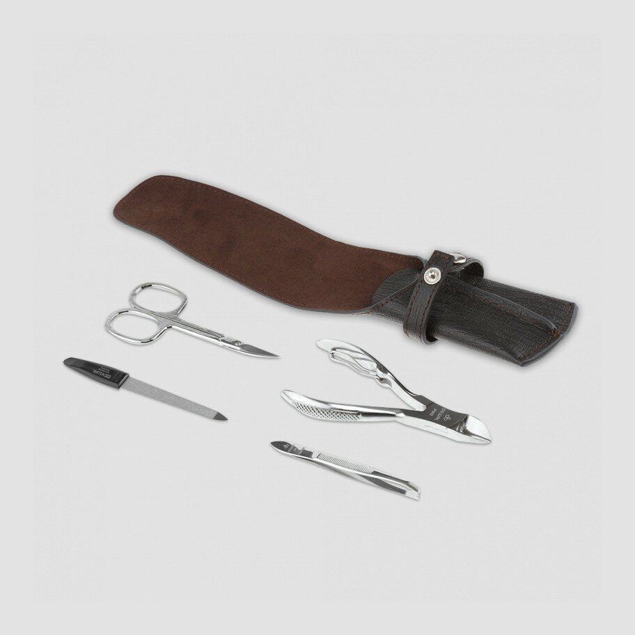 Маникюрный набор DEWAL серии "Современная классика" 4 предмета, футляр натуральная кожа, цвет коричневый (901BROWN)