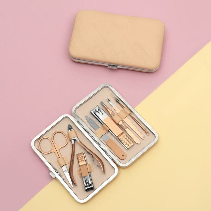 Набор маникюрный, 8 предметов, в футляре, цвет бежевый