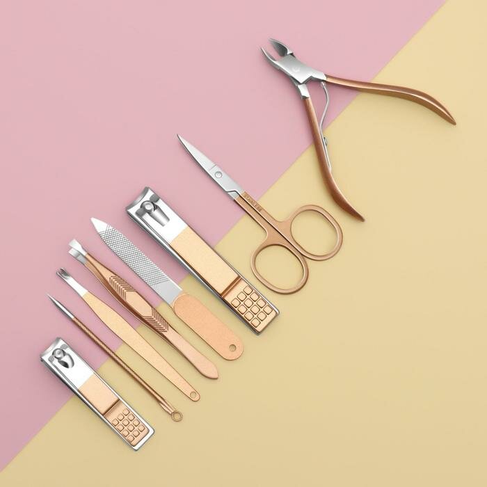 Queen fair Набор маникюрный, 8 предметов, в футляре, цвет бежевый/розовое золото