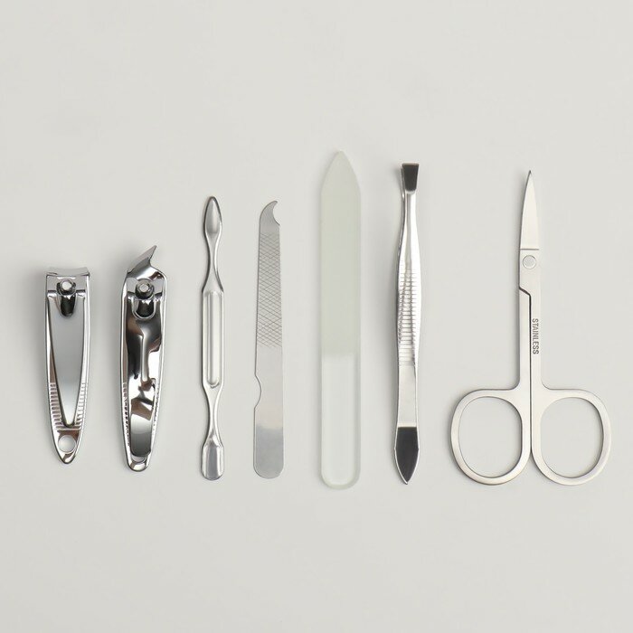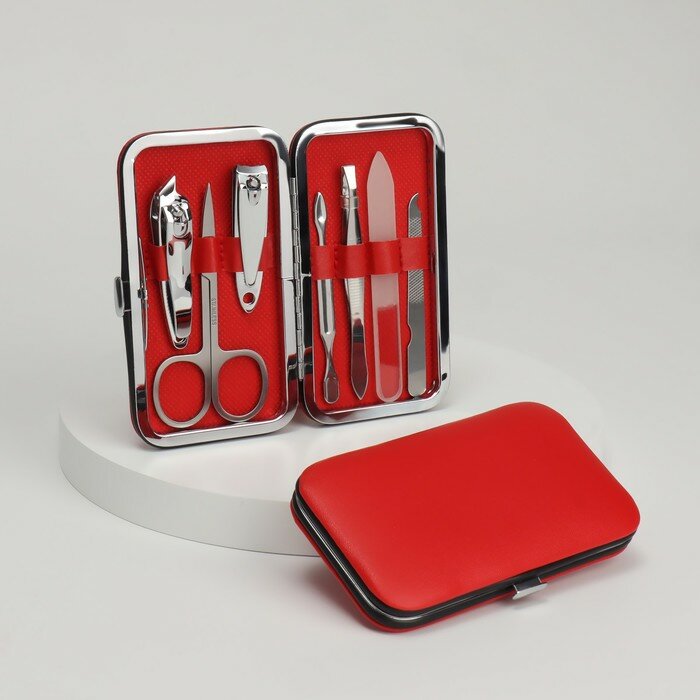 Набор маникюрный, 7 предметов, в футляре, цвет красный (1 шт.)