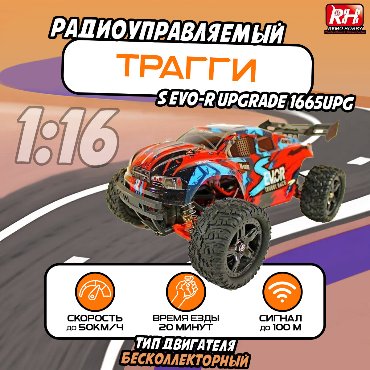 Радиоуправляемый трагги Remo Hobby S-EVOR 4WD RTR масштаб 1:16 2.4G - RH1665UPG-RED