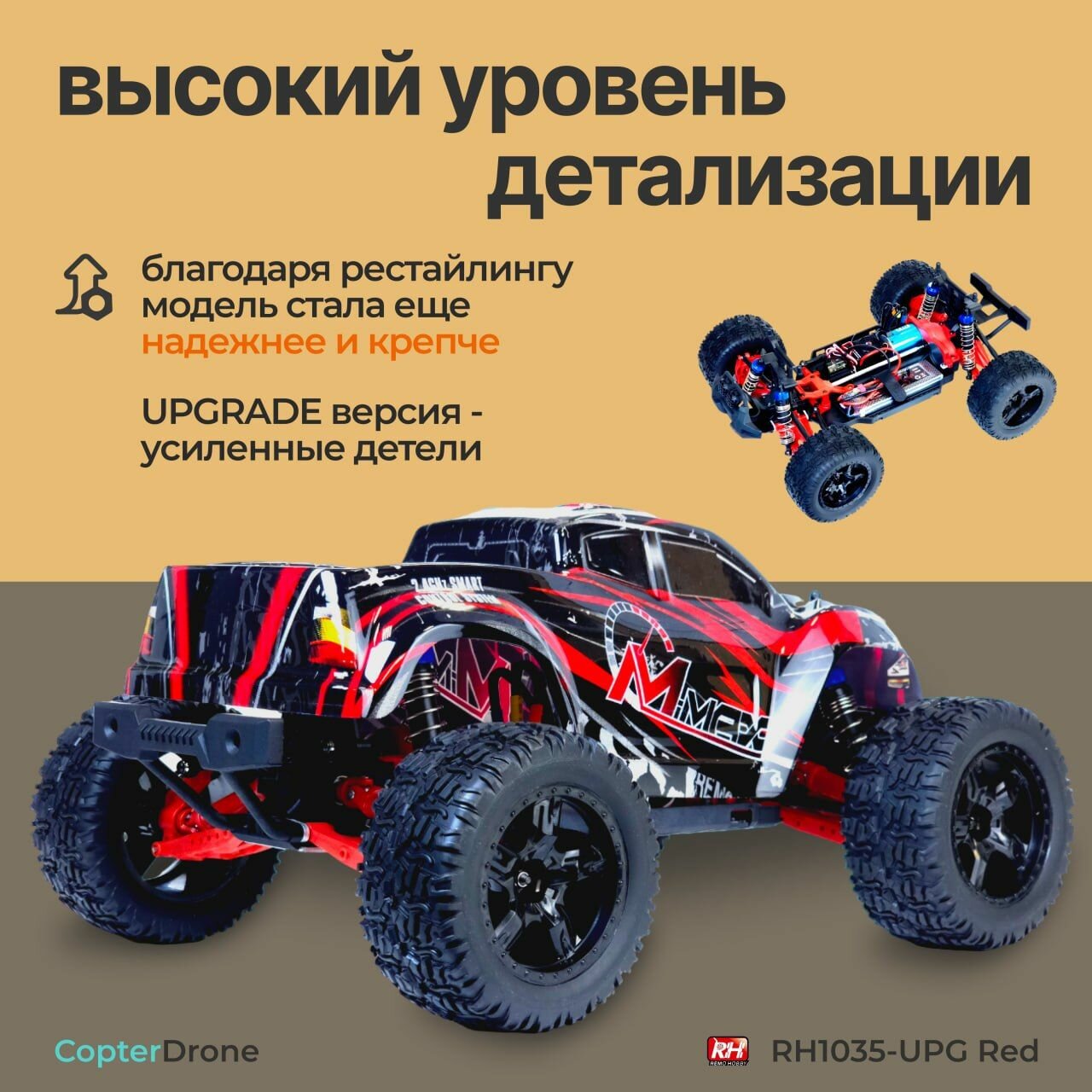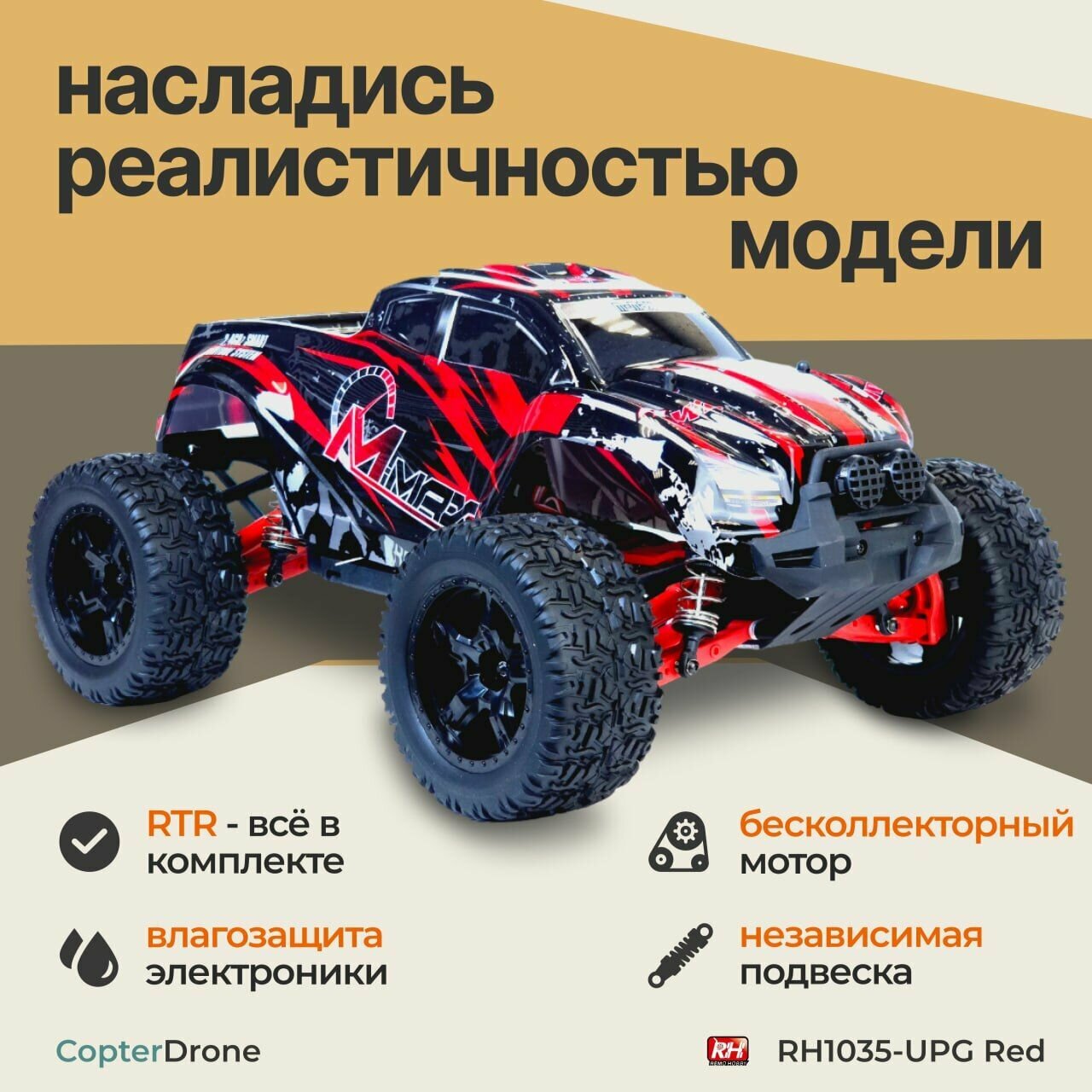 Радиоуправляемый монстр Remo Hobby MMAX UPGRADE 4WD RTR масштаб 1:10 2.4G - RH1035UPG-RED