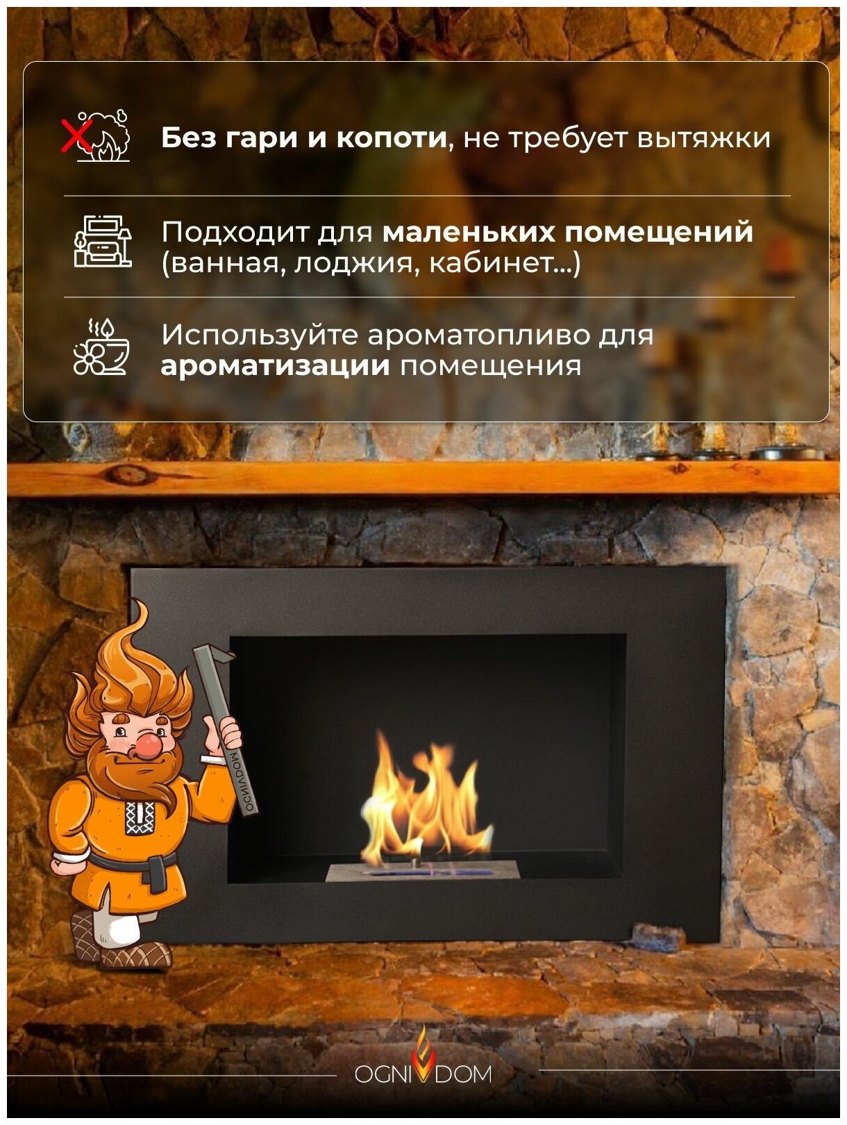 Биокамин OGNIVDOM Кузя E600 интересное: