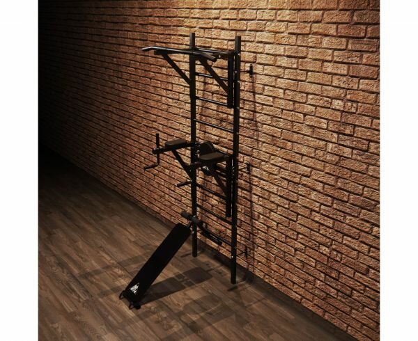 | Минусы: | Отсутствуют заглушки на болты, заглушки на ножки стенки (на пол фактически устанавливается металл), а также турник без неопреновых ручек. |