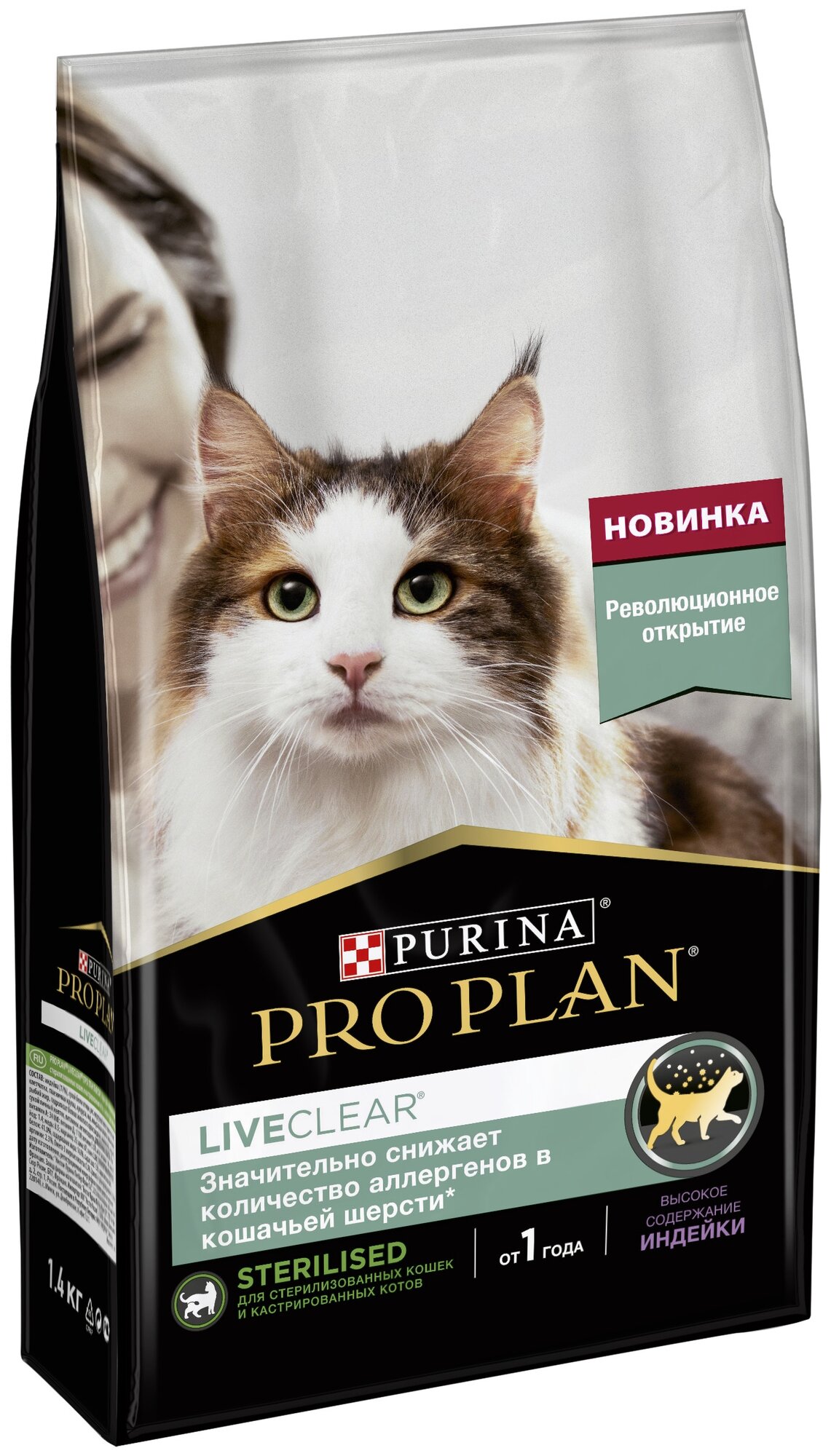 Сухой корм Pro Plan® LiveClear для стерилизованных кошек, снижает количество аллергенов в шерсти, с индейкой, пакет, 1,4 кг