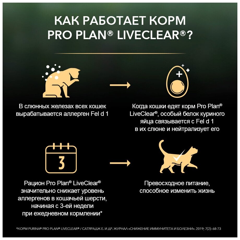 Сухой корм Pro Plan LiveClear для стерилизованных кошек, снижает количество аллергенов в шерсти, с индейкой, Пакет, 1,4 кг х 3 шт