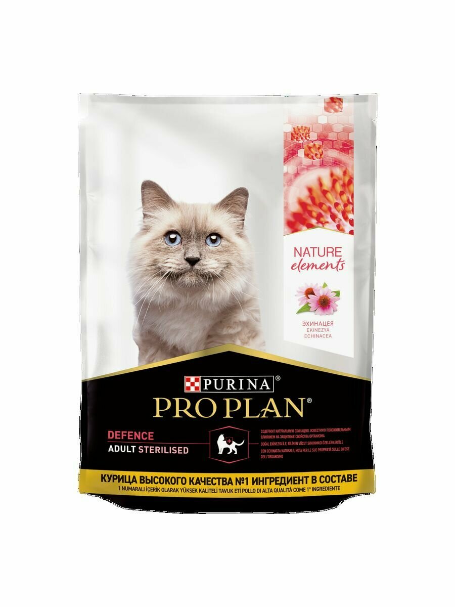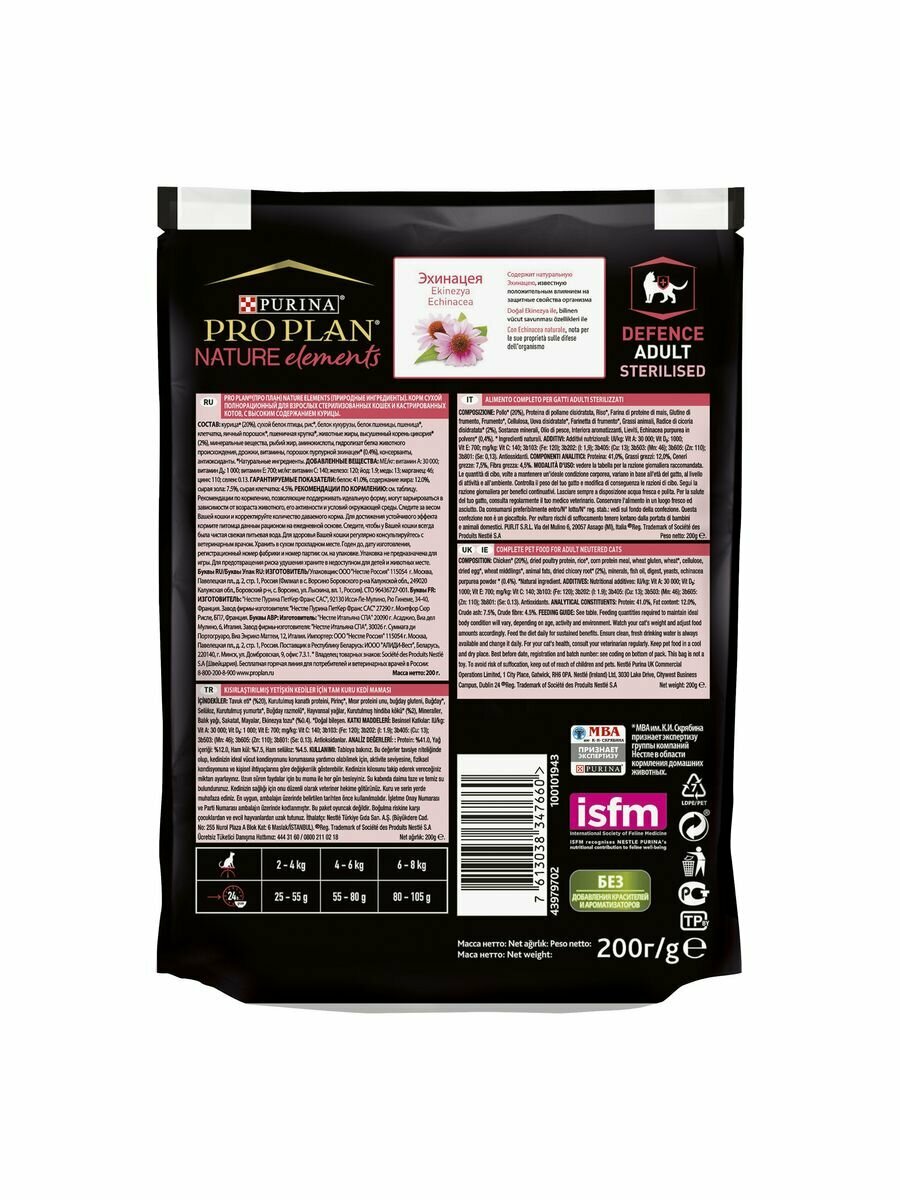 Купить PRO PLAN NATURE ELEMENTS CAT STERILISED для взрослых кастрированных котов и стерилизованных кошек с курицей (0,2 кг)