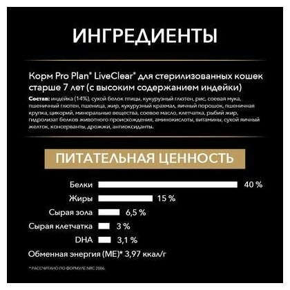 Purina Pro Plan LiveСlear для стерилизованных кошек и кастрированных котов, с индейкой интересное: