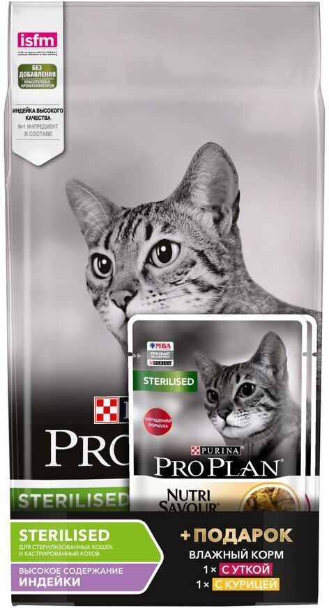 Сухой корм Purina Pro Plan Sterilised для взрослых стерилизованных кошек и кастрированных котов, с индейкой, 10 кг