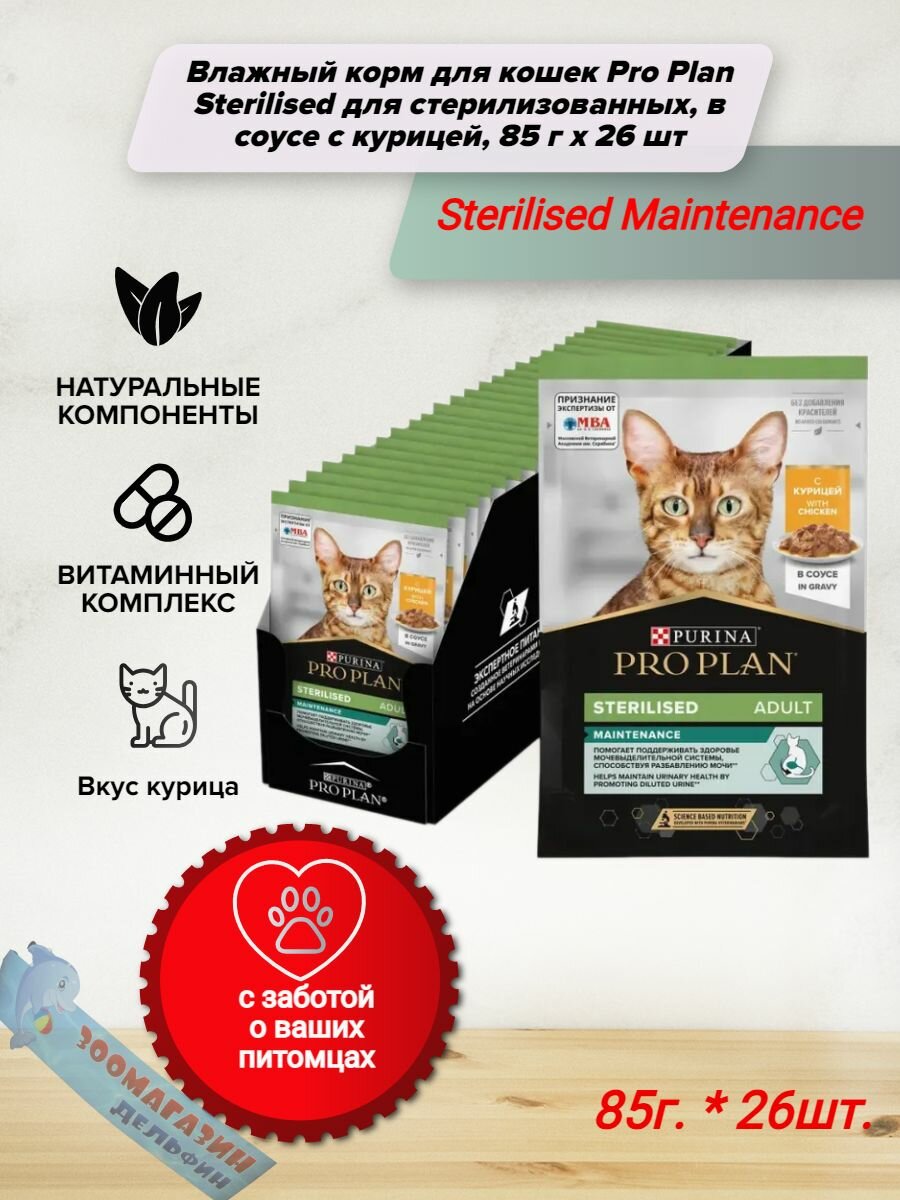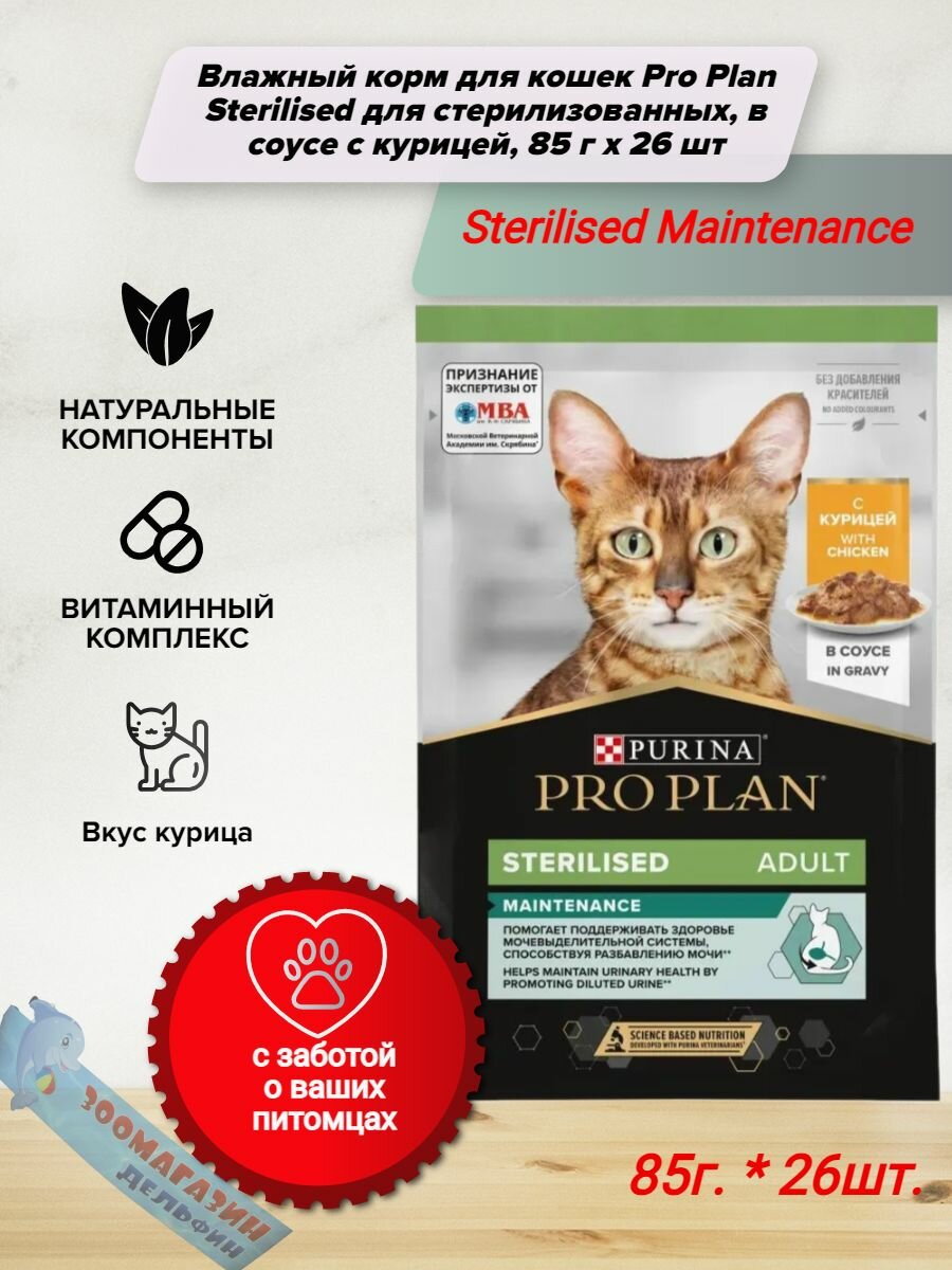 Влажный корм для кошек Pro Plan Sterilised для стерилизованных, в соусе с курицей, 85 г x 26 шт