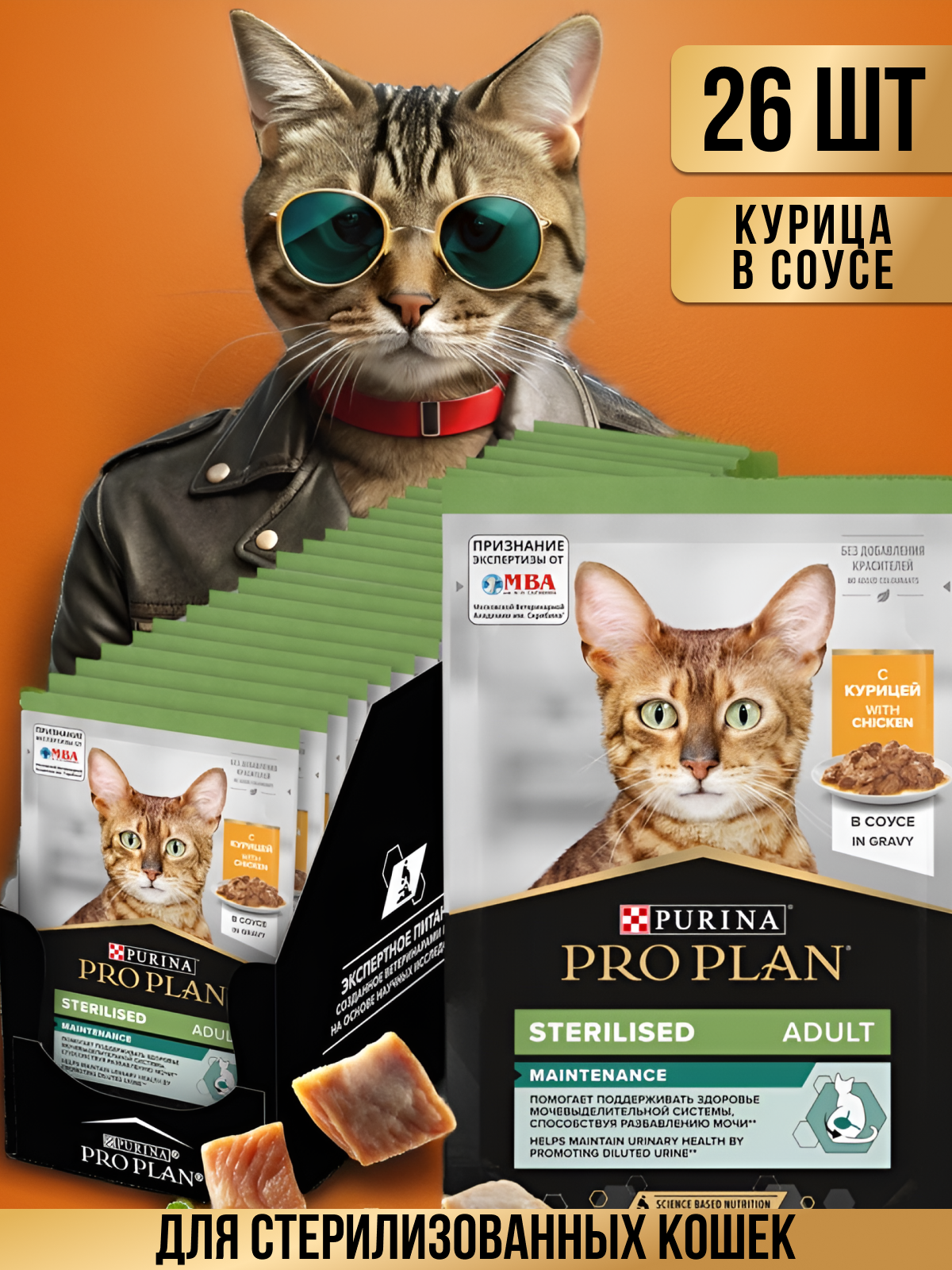 Pro Plan Sterilised паучи для взрослых стерилизованных кошек с курицей - 85 г х 26 шт интересное:
