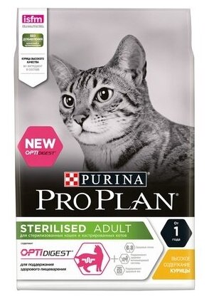 Purina Pro Plan Сухой корм для Кастрированных кошек с чувствительным пищ-ем курица (Optidigest Sterilised) 12370474 1,5 кг 33986 (2 шт) интересное: