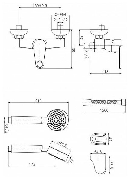 | Комплектация | ручной душ / лейка / шланг / держатель для ручной лейки |