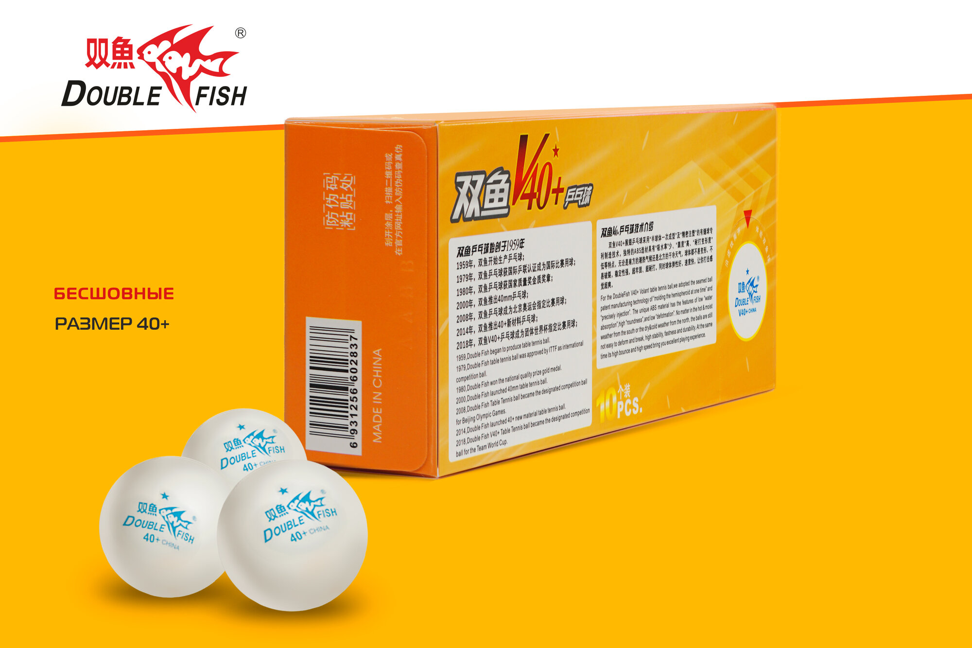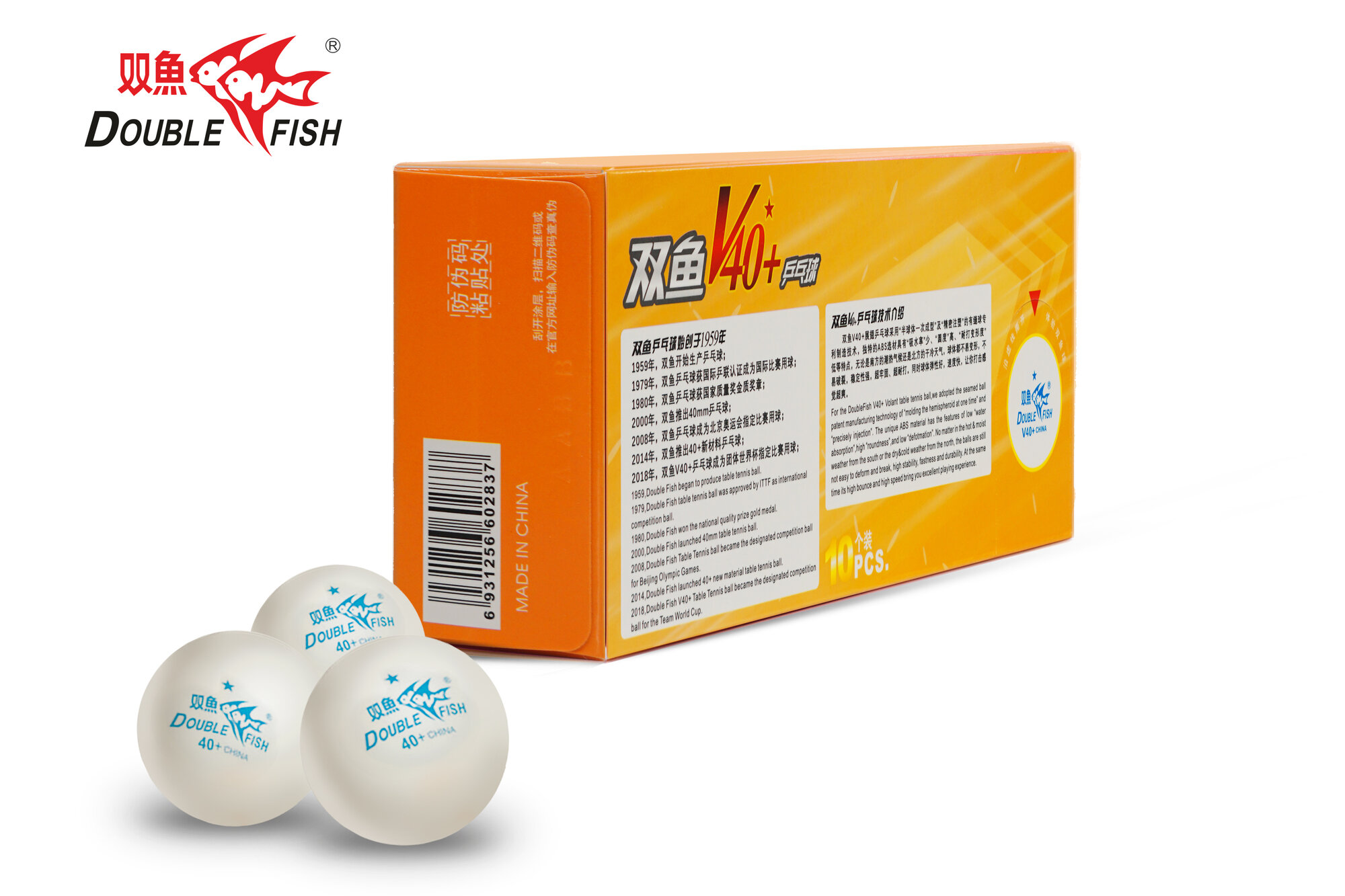 Мячи для настольного тенниса Double Fish 1* V40+ ITTF Plastic ABS x10 White V201F