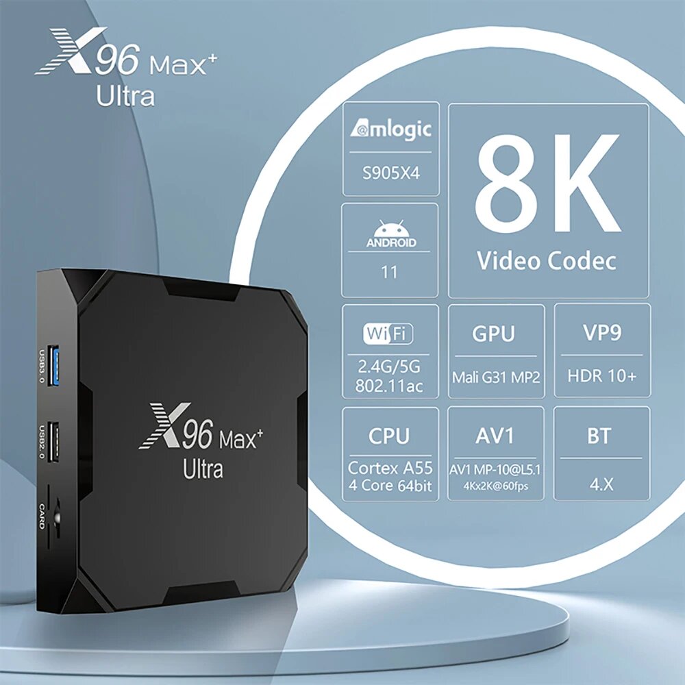 Smart приставка X96 Max Plus Ultra S905X4 Смарт-ТВ-бокс Андроид11.0 HD 8K интересное: