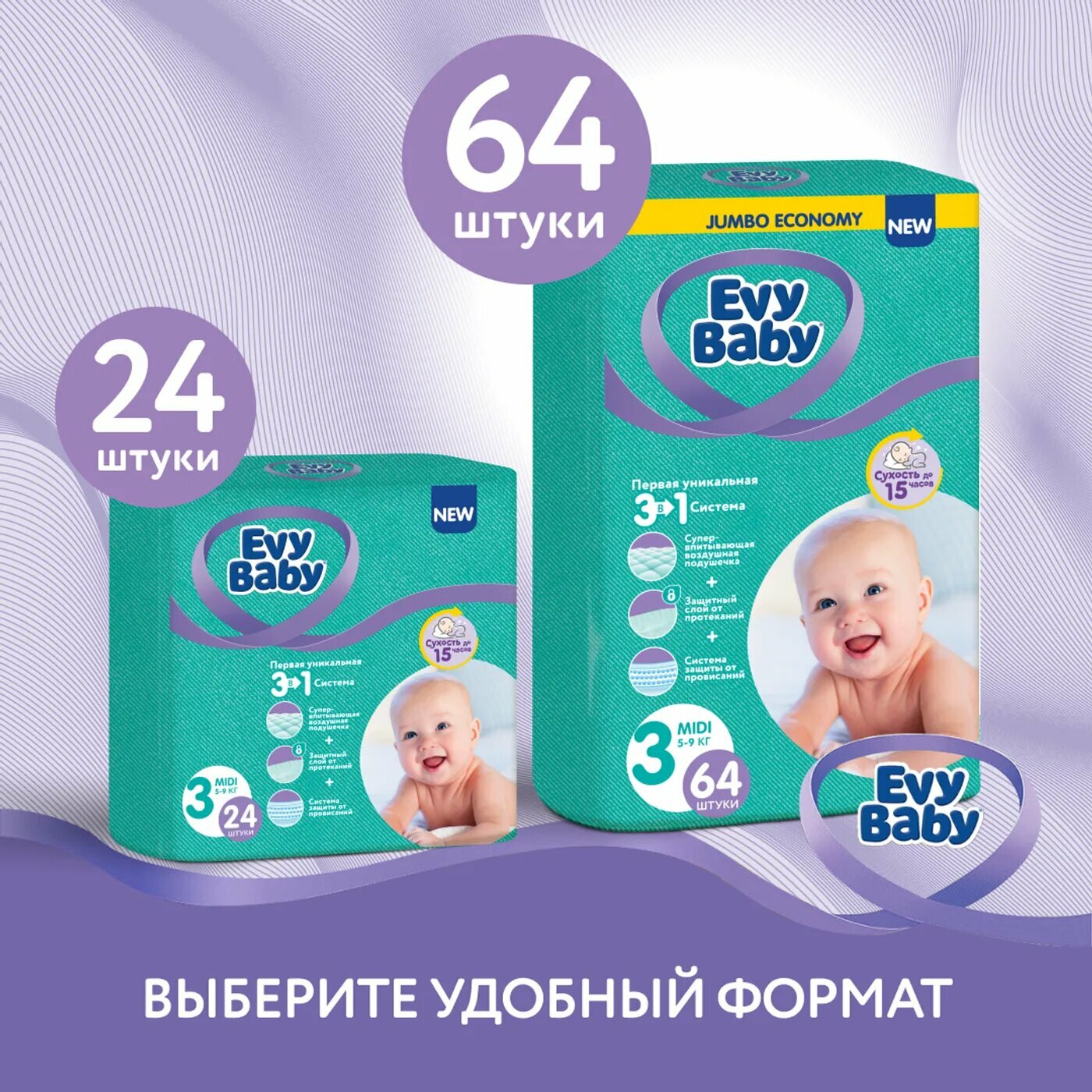 Подгузники Evy Baby Midi 5-9 кг (Размер 3/M), 64 шт