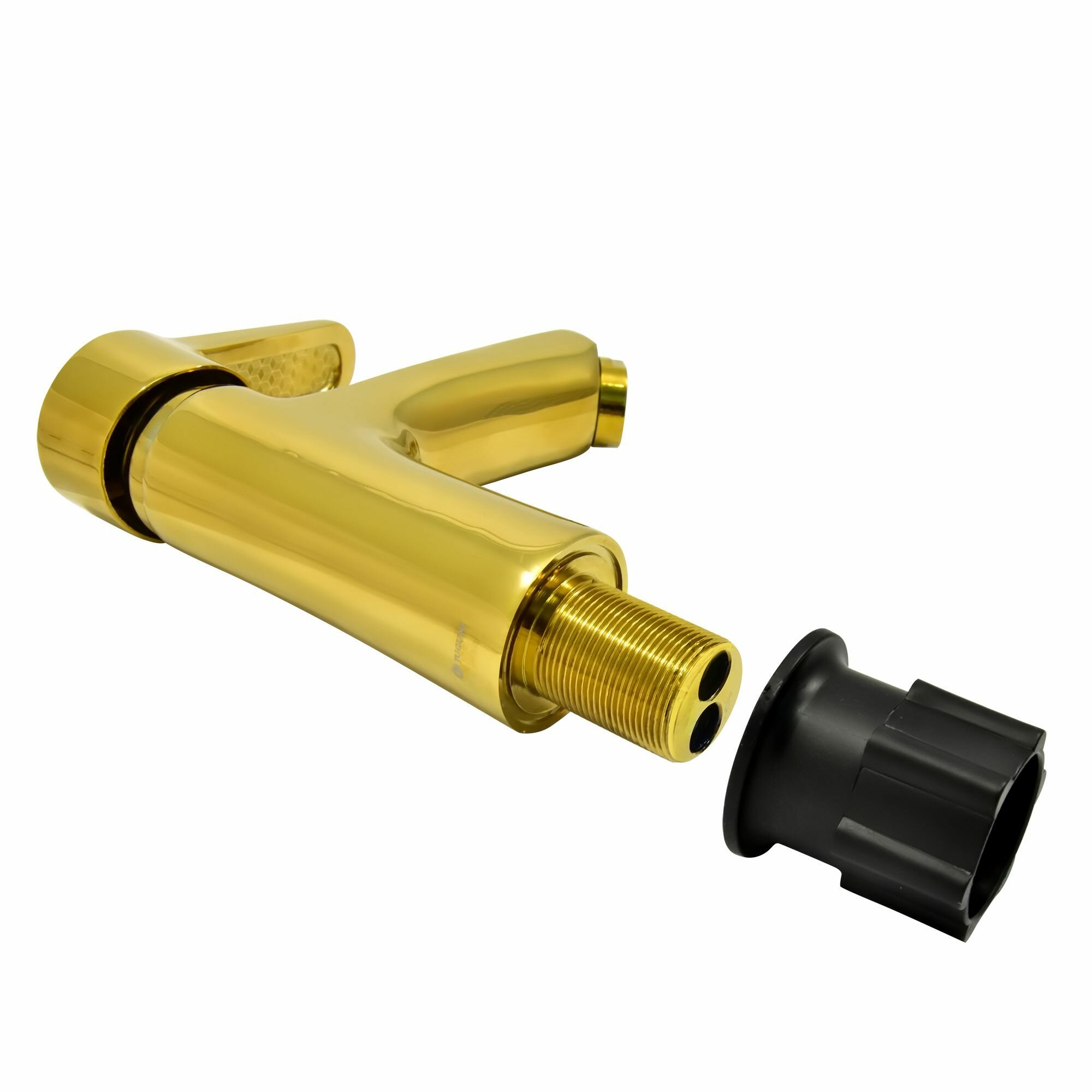 Смеситель для умывальника золотой с лит. изливом, карт. 35 мм, подводка, креп.гайка, Juguni, Арт.: 0402.162 интересное: