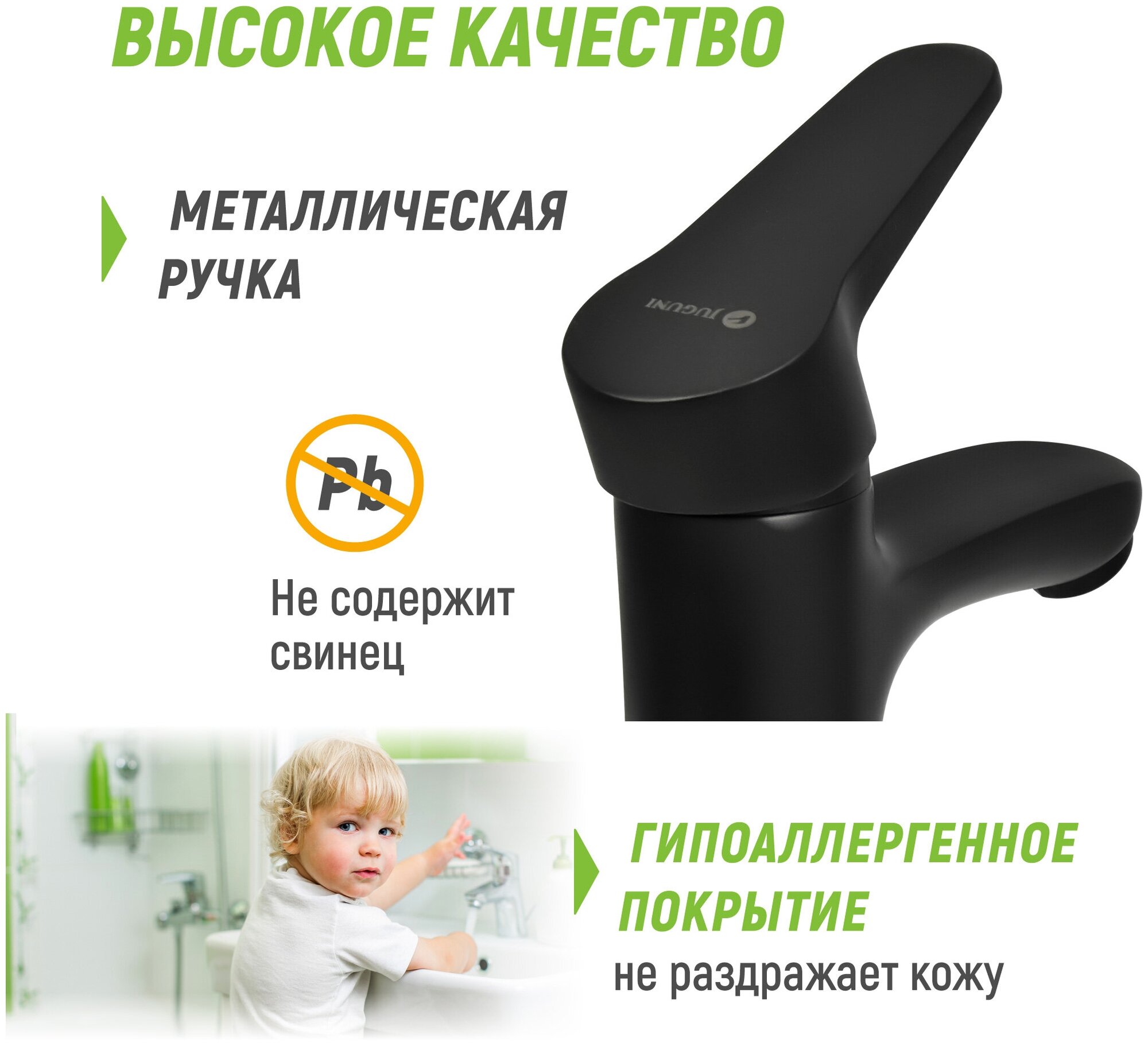 Смеситель для умывальника черный с лит. изливом, карт. 35 мм, подводка, креп. гайка, Juguni, Арт.: 0402.154 интересное: