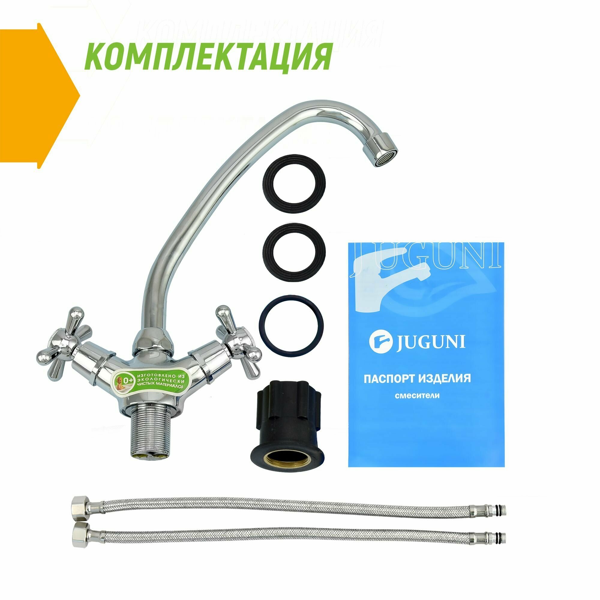 Смеситель для мойки двуручный Juguni с поворотным изливом, керам. кран букса, гайка, 0402.441 интересное: