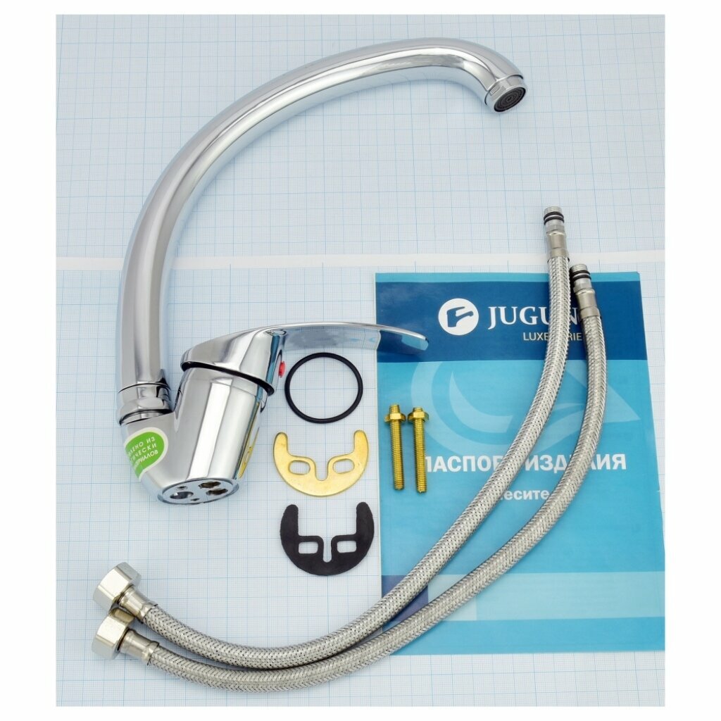 Смеситель для мойки одноручный Juguni с гибкой подводкой, литой поворотный излив, 0402.710 интересное:
