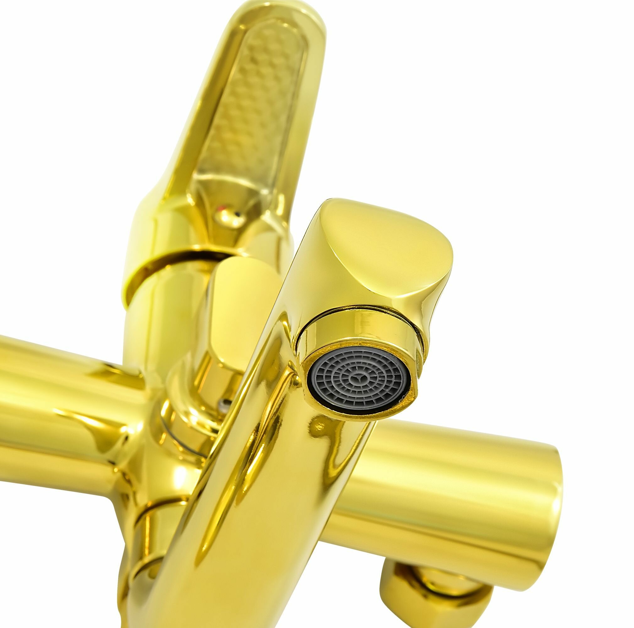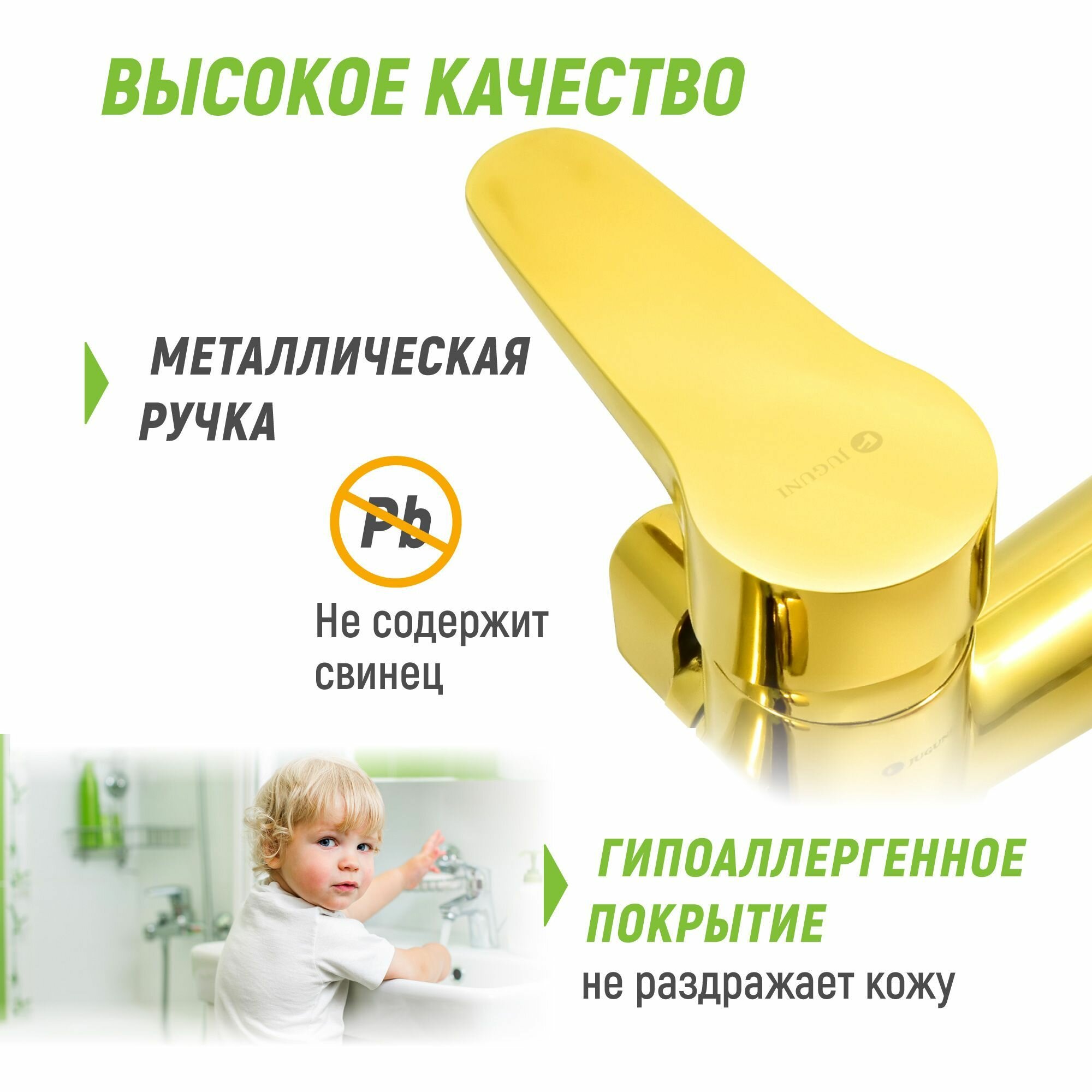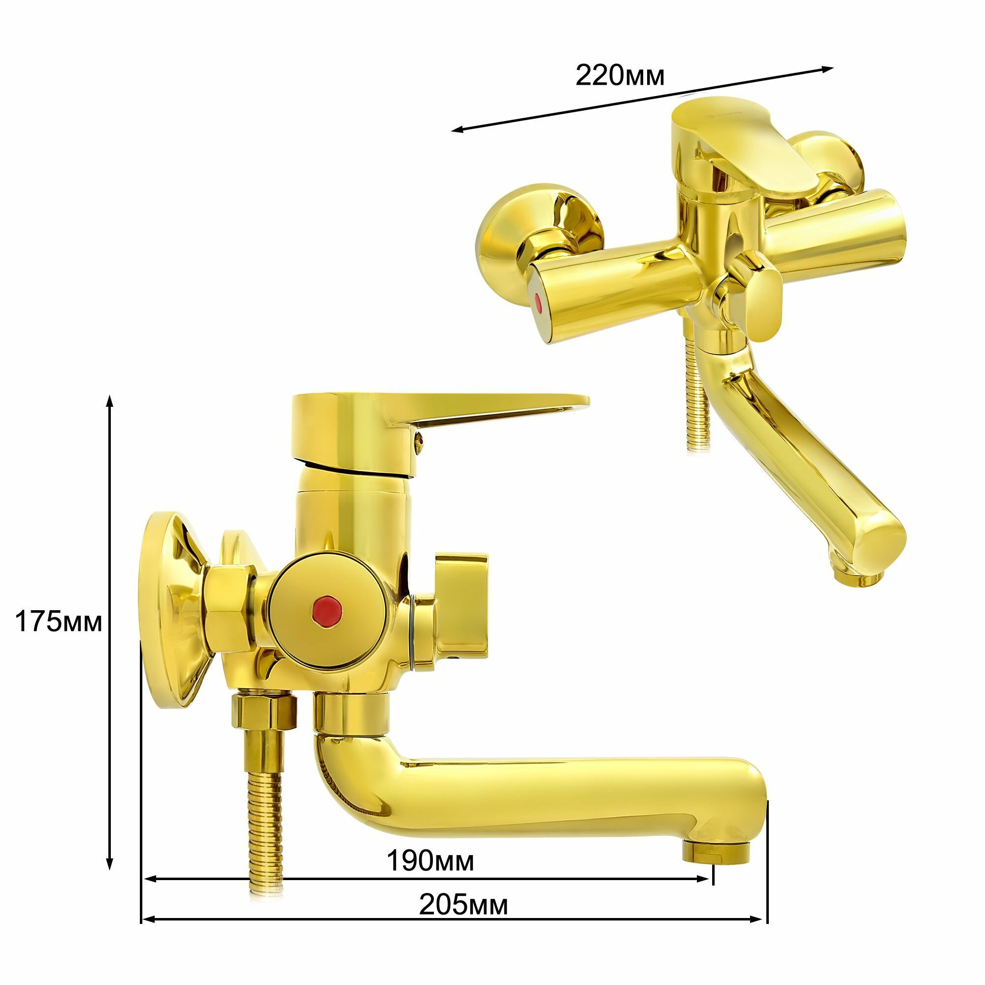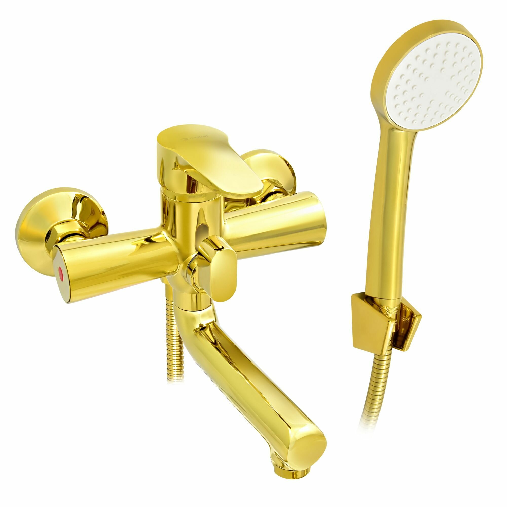 Смеситель для ванны с коротким изливом золотой, шланг 150 см, лейка, Juguni, Арт.: 0402.163 интересное: