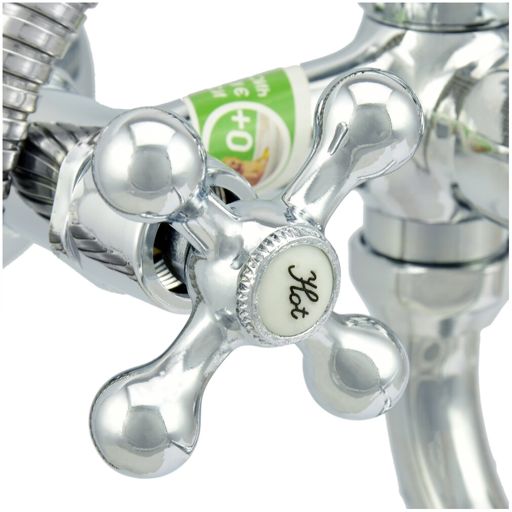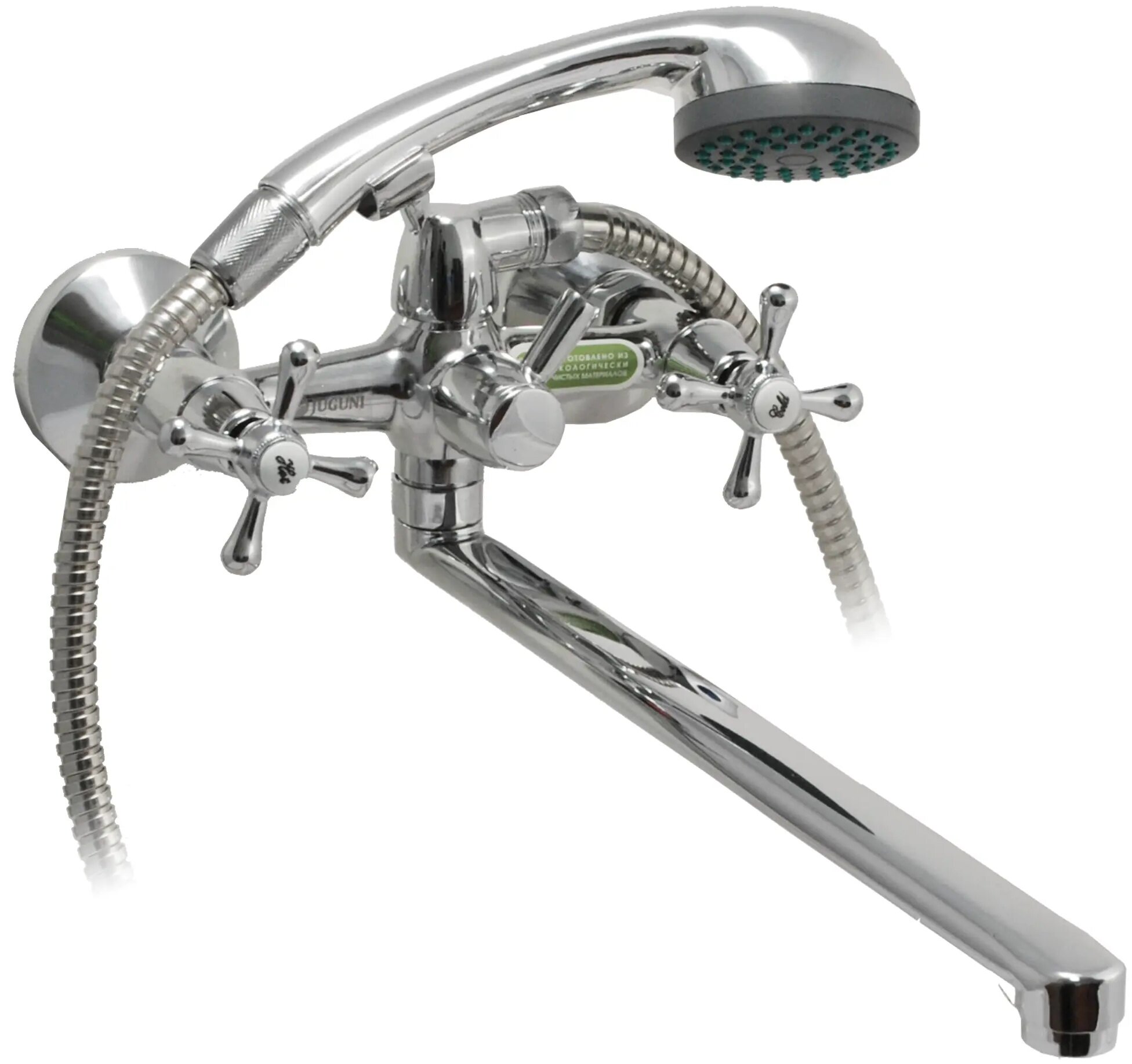 Смеситель ванно-душевой двуручный Juguni с металлическим шлангом и хром. лейкой, 0402.656
